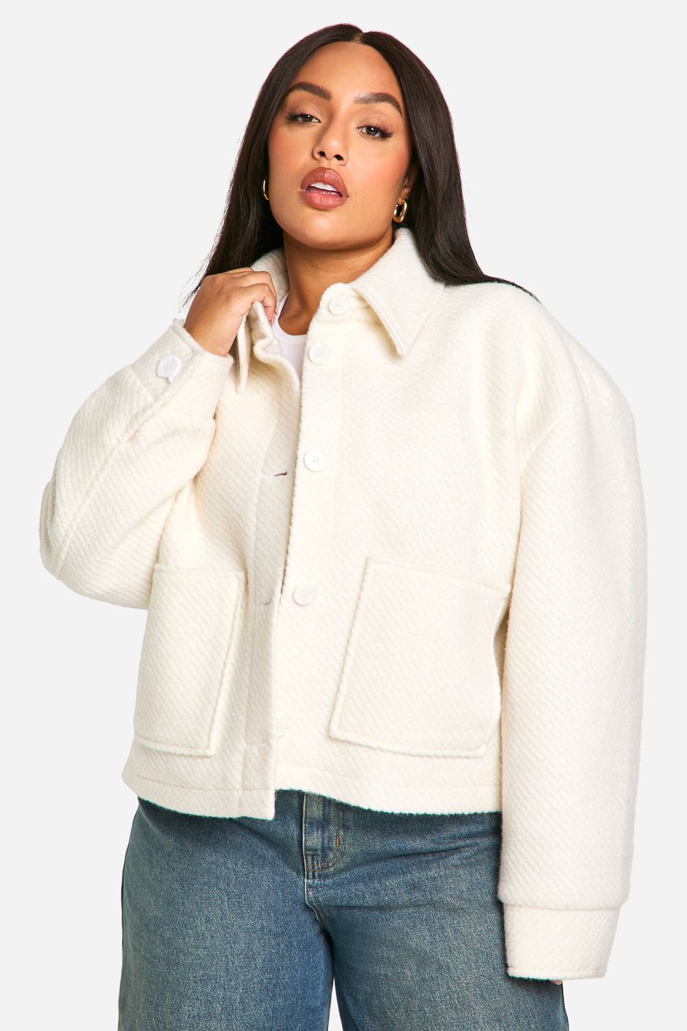 Plus Collared Boucle Wool Look Jacket