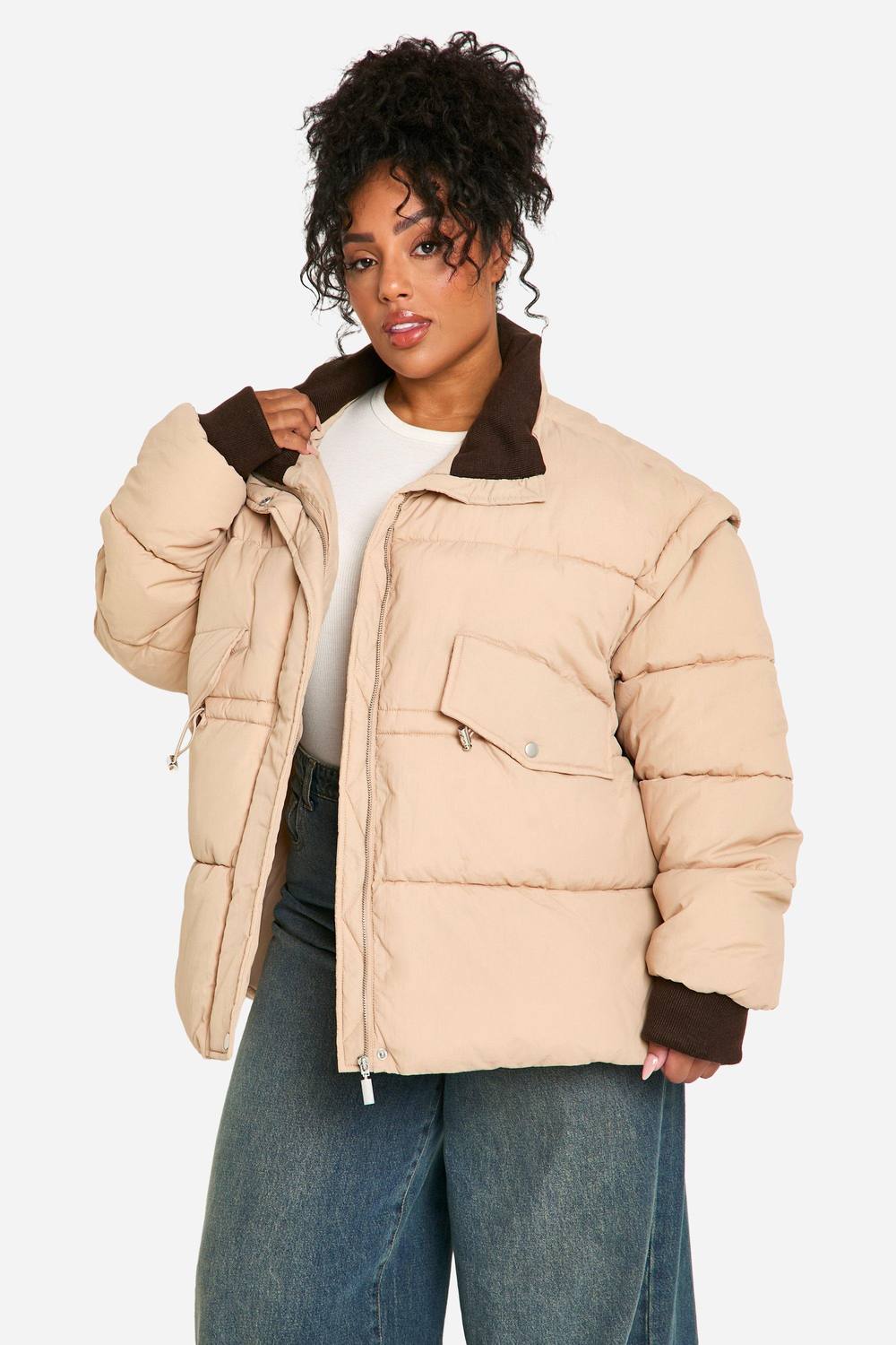 Plus Contrast Kraag Oversized Pufferjack, Stone
