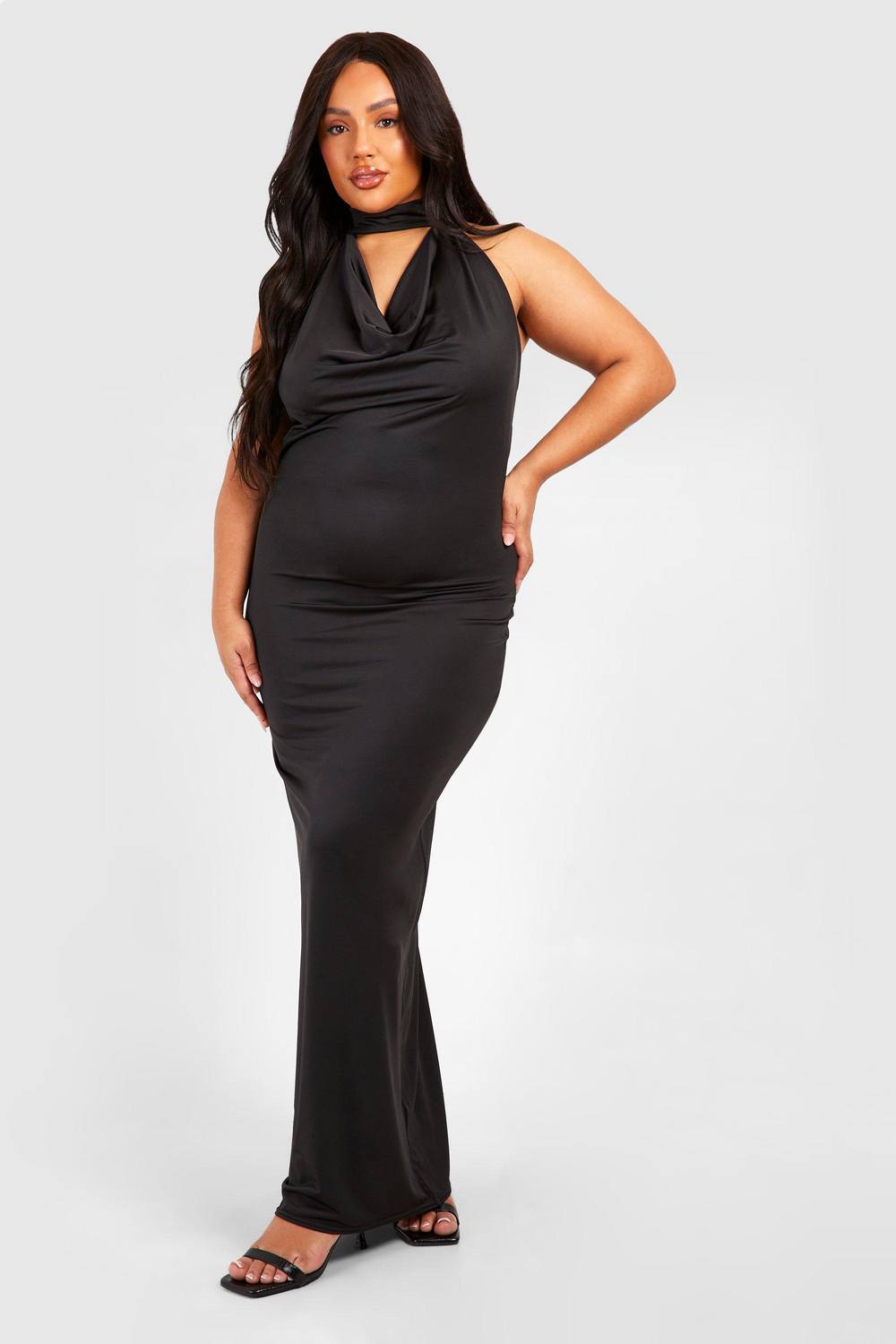 Plus Drape Halterneck Slinky Maxi Jurk