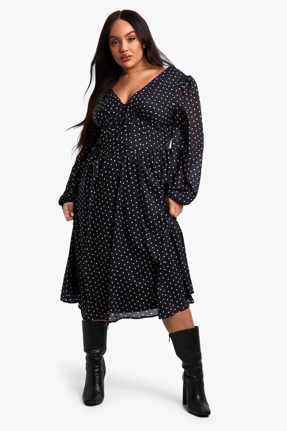 Plus geweven polkadot Milkmaid Midi Skater jurk