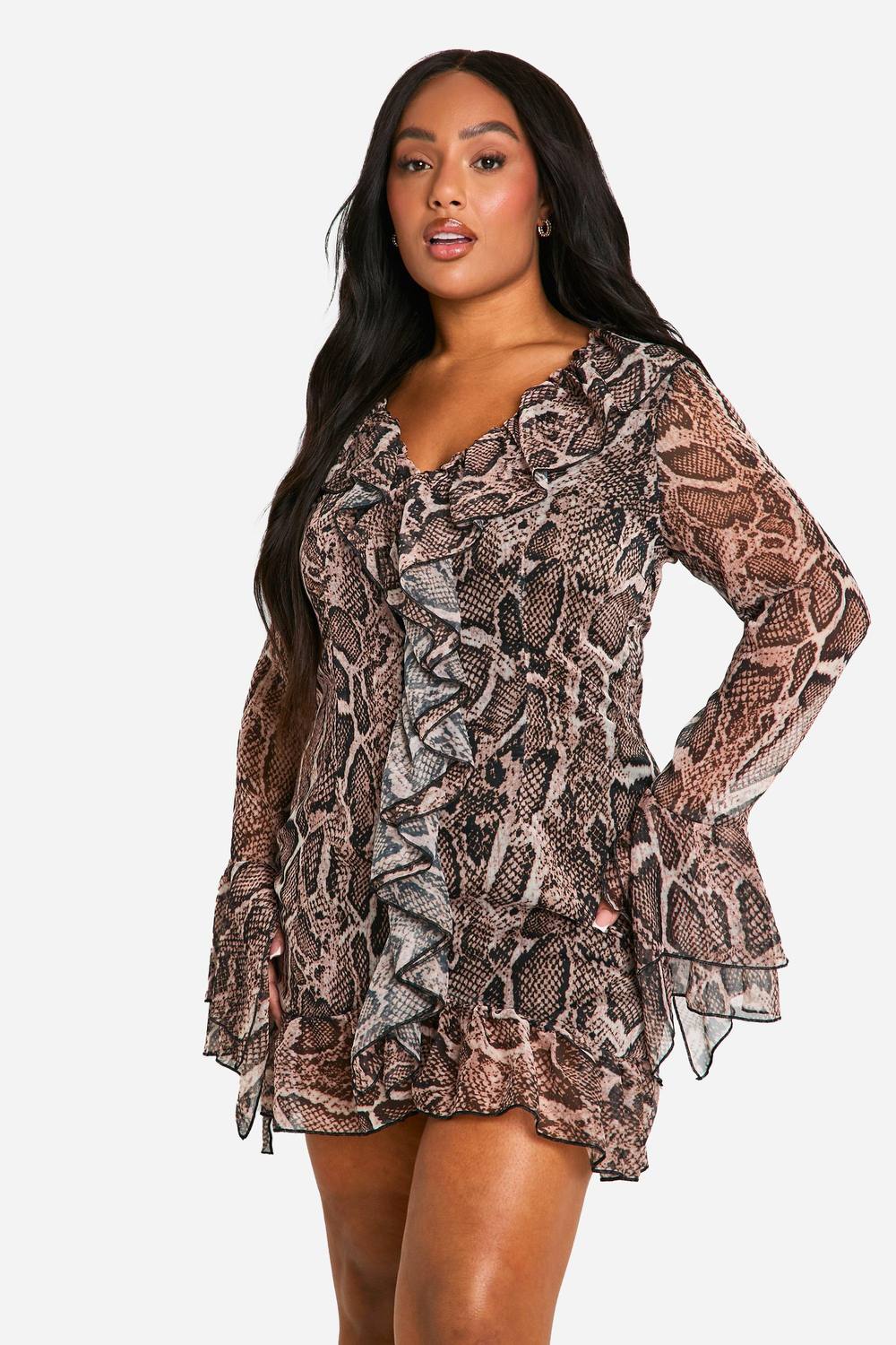 Plus Geweven Ruffle Snake Print Shiftjurk