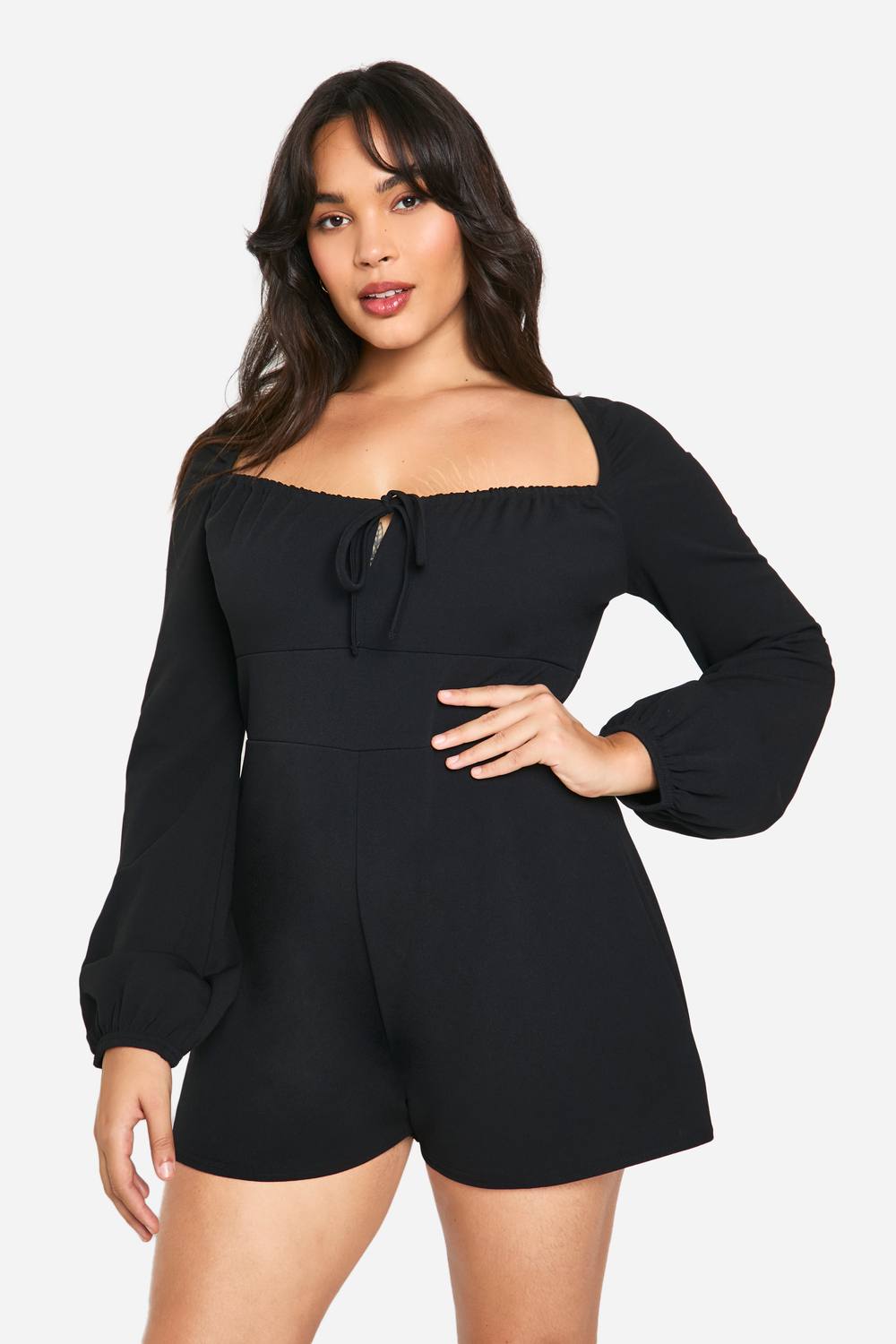 Plus-size playsuit met strikdetail aan de voorkant en blousonmouwen