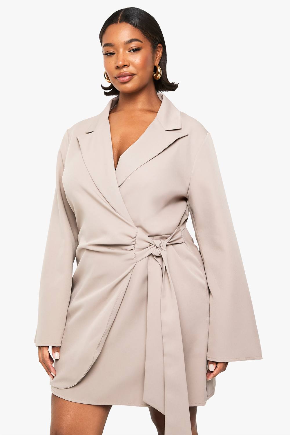 Plus Tie Taille Maatwerk Blazerjurk, Mushroom
