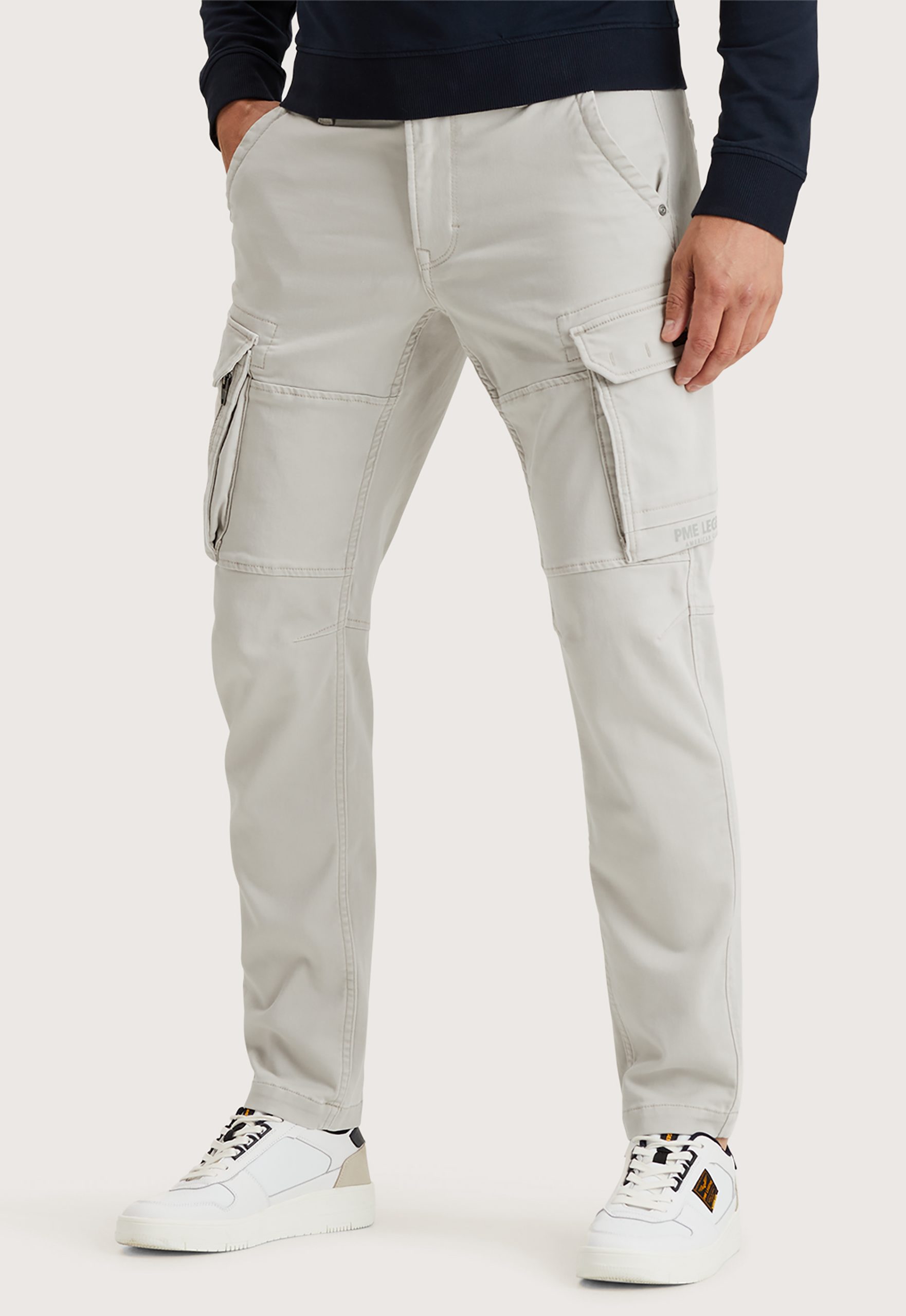 Dit is de PTR2503622 Expedizor Colored Cargo van het merk PME Legend. Deze cargo heeft een tapered fit met een mid waist en is gemaakt van een katoenmix met stretch. De broek heeft cargozakken op de bovenbenen en is afgewerkt met verschillende kenmerkende PME Legend details. De tailleband is aan de achterkant elastisch en aan de voorkant te verstellen door middel van een trekkoord.