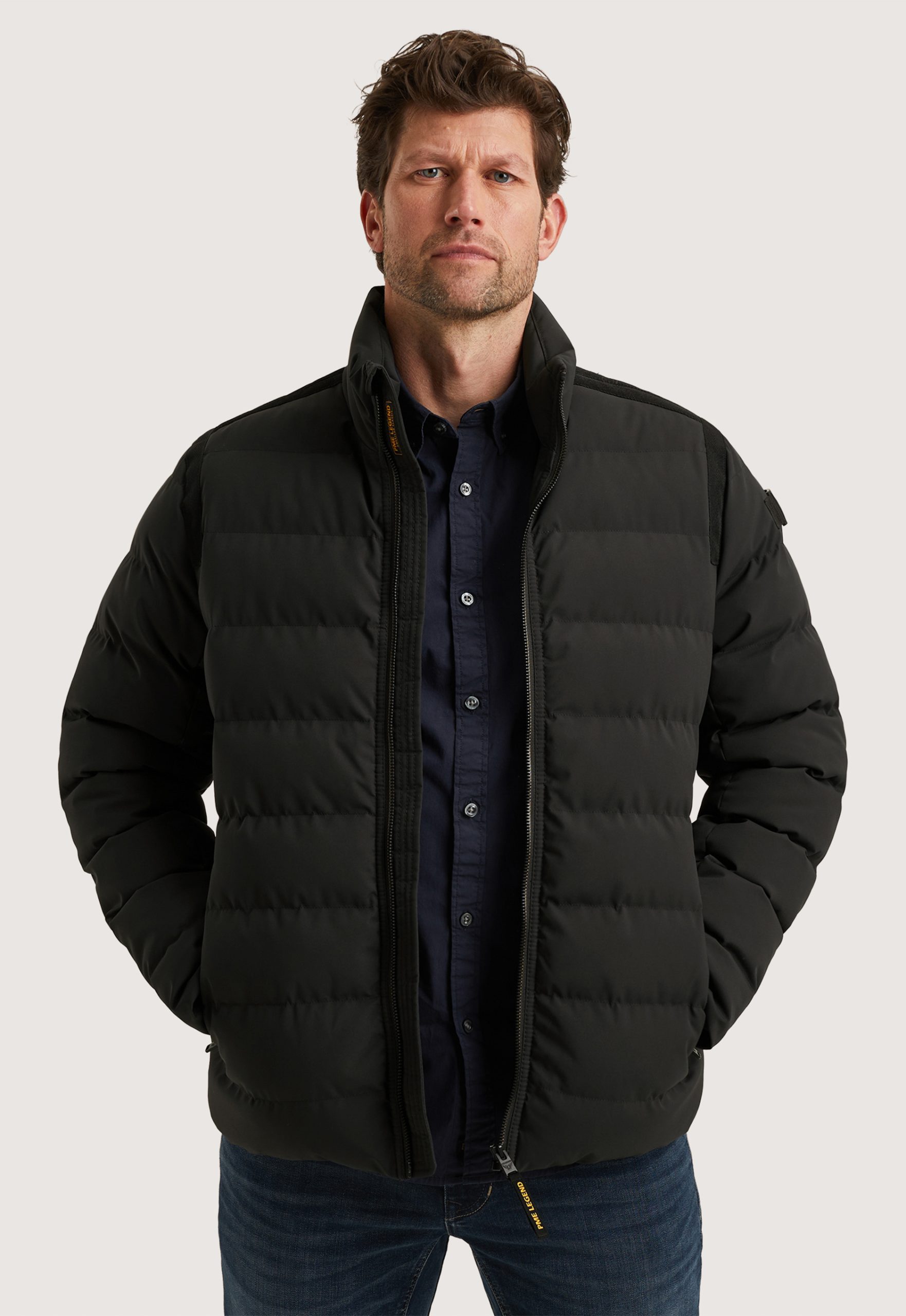 Dit is de PJA2508114 Freightyet Jas van het merk PME Legend. Deze lichtgewicht pufferjas is uitgevoerd in een waterafstotend materiaal. Dankzij de comfort stretch en de Tech Down vulling biedt deze jas veel draagcomfort en warmte. De opstaande kraag, de elastische heupboord en de windcatchers in de mouwen houden de kou goed buiten. De jas is voorzien van twee ruime voorzakken met fleecevoering en rits, en een extra binnenzak met rits. De engineered quilting en de flight tapes op de schouders en bij de armsgaten zorgen voor de kenmerkende, stoere PME Legend uitstraling.