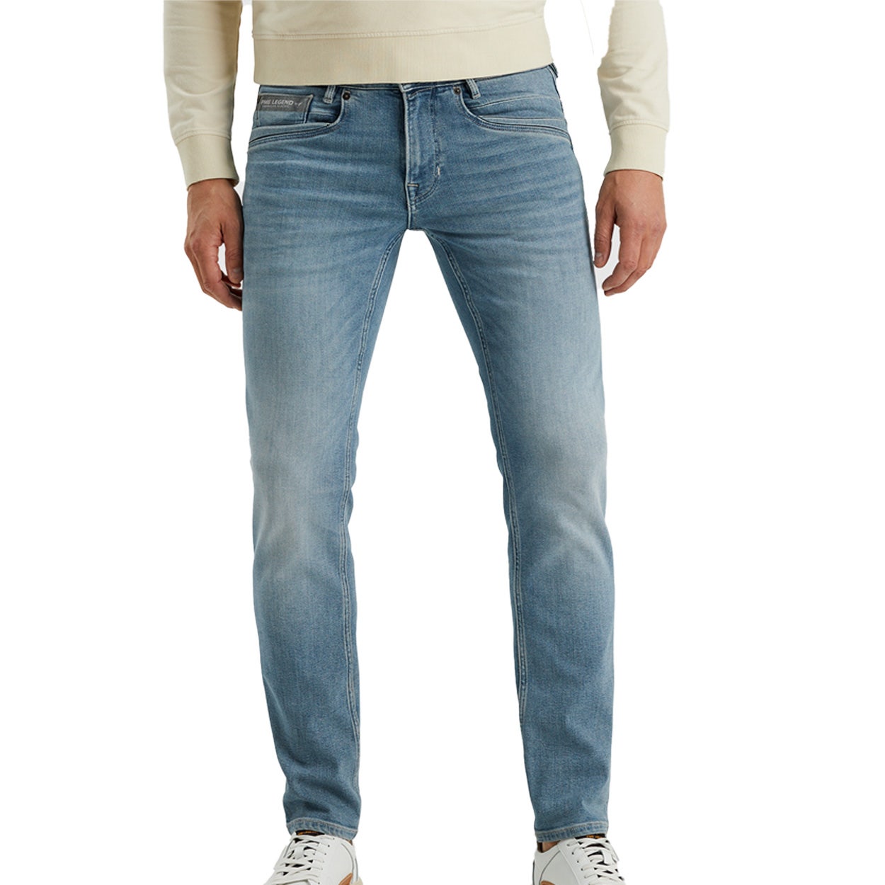 De nieuwste fit van PME Legend: de Skyrak jeans. Deze jeans heeft een regular fit die vergelijkbaar is met die van de PME Legend Nightflight jeans, maar boven net iets ruimer zit. Hij is uitgevoerd in een zachte left-hand denim met comfort stretch. De speciale blauwe kleur en de uitgesproken wassing zorgen voor een stoere look. Unieke details, zoals de siliconen rand op de voor- en achterzakken geïnspireerd op de vorm van een propeller, geven deze jeans een kenmerkende, maar moderne PME Legend uitstraling.