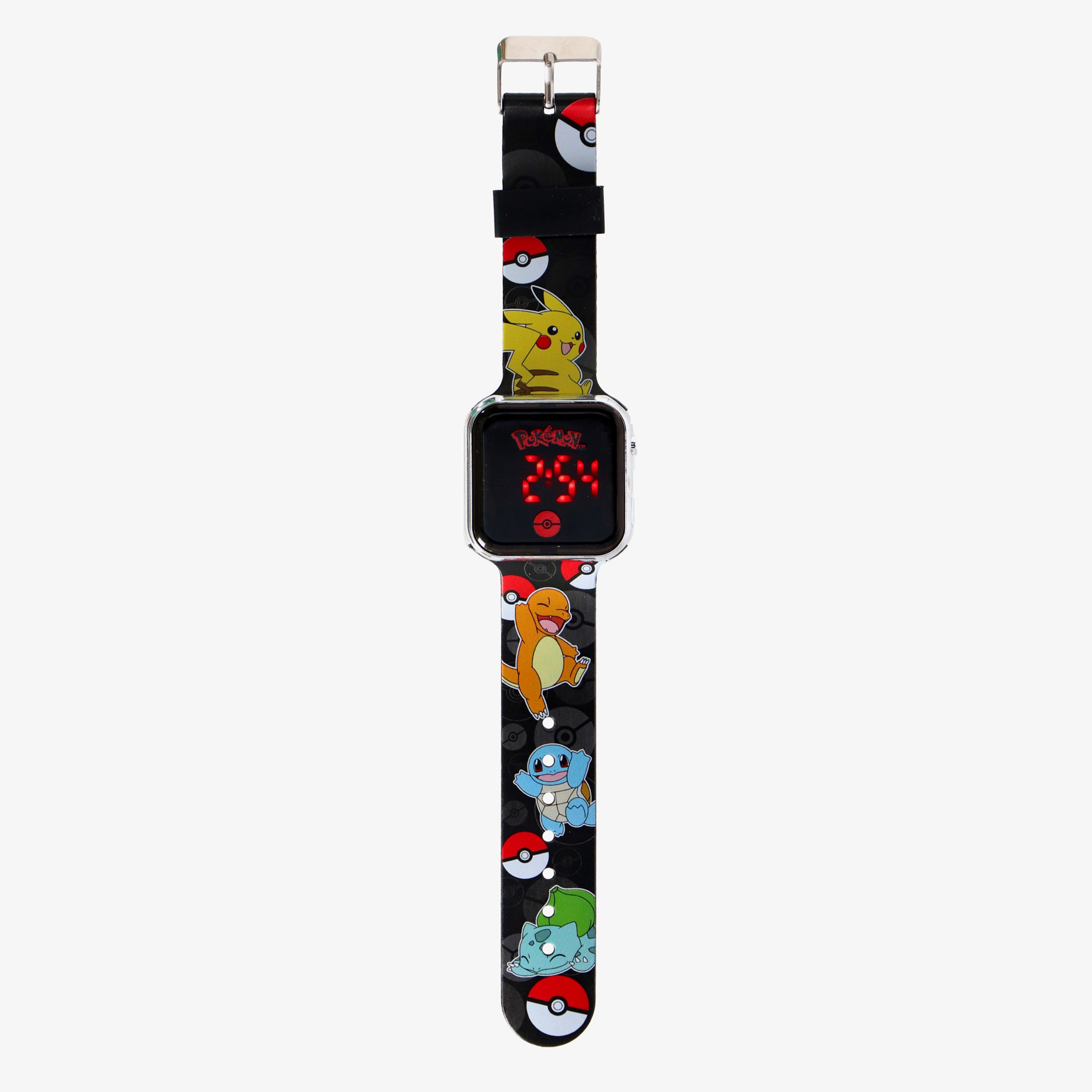 Met het Pokémon LED horloge weet jij niet alleen altijd hoe laat het is, maar heb jij je favoriete Pokémon ook altijd bij je! Met Pikachu, Bulbasaur, Charmander en Squirtle om jouw pols kan niemand er aan twijfelen dat jij een echte Poké-fan bent! Geschikt voor kinderen vanaf 3 jaar.¶