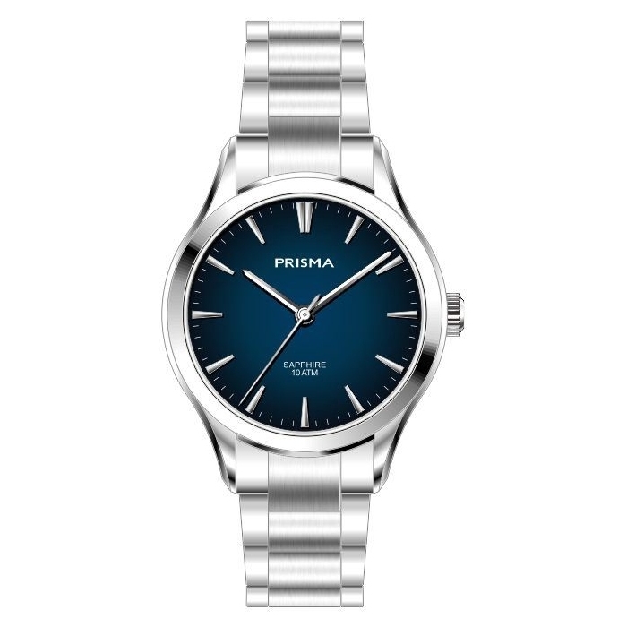 Het elegante Prisma dameshorloge met referentie P.2009 heeft een zilverkleurige kast en donkerblauwe wijzerplaat. De kast is vervaardigd uit edelstaal en het glas is van saffier. Saffierglas heeft als eigenschap extra krasbestendig te zijn.