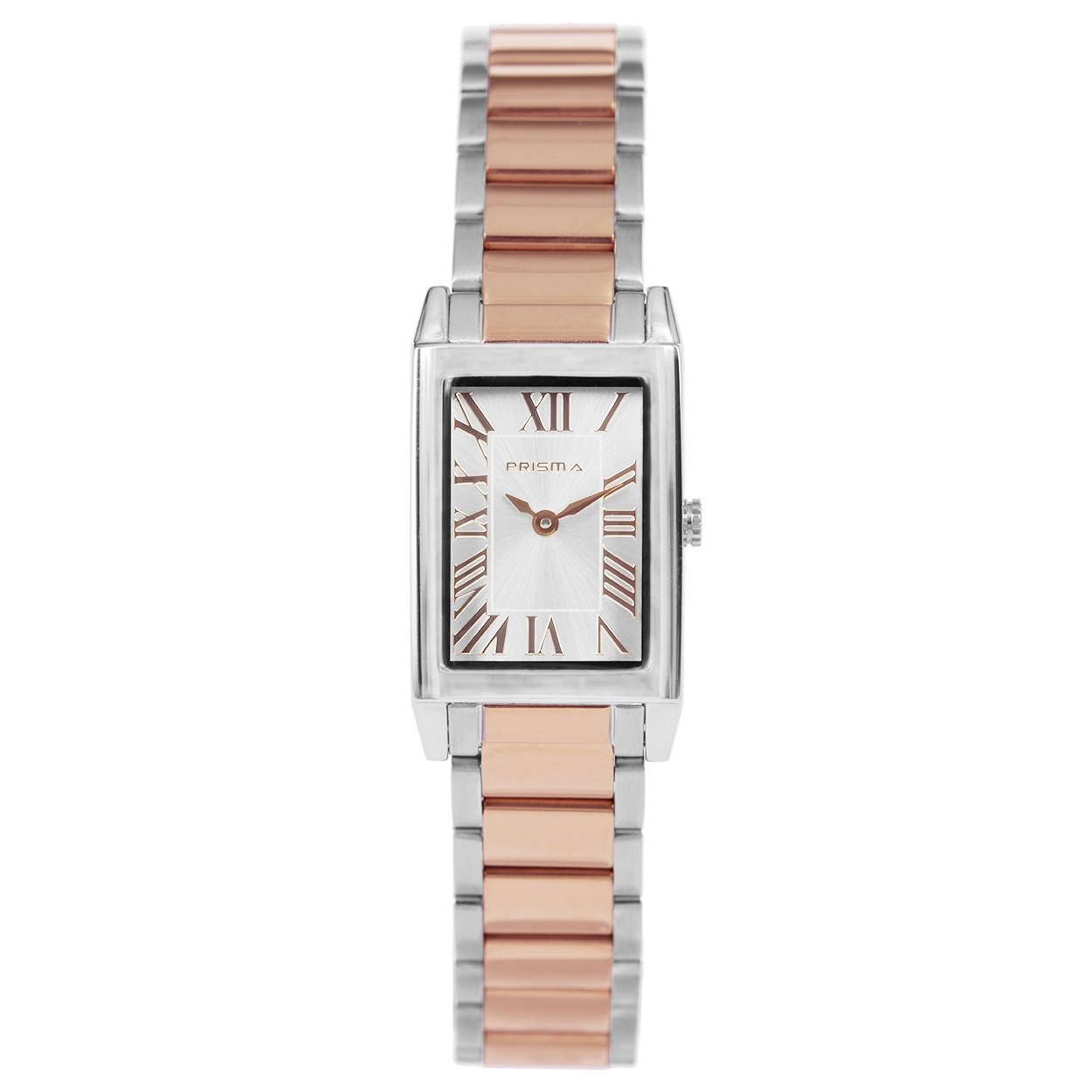 Prachtig Prisma dameshorloge met rechthoekige kastvorm en Romeinse uurmarkeringen. Het horloge is voorzien van een Zwitsers Quartz-uurwerk.