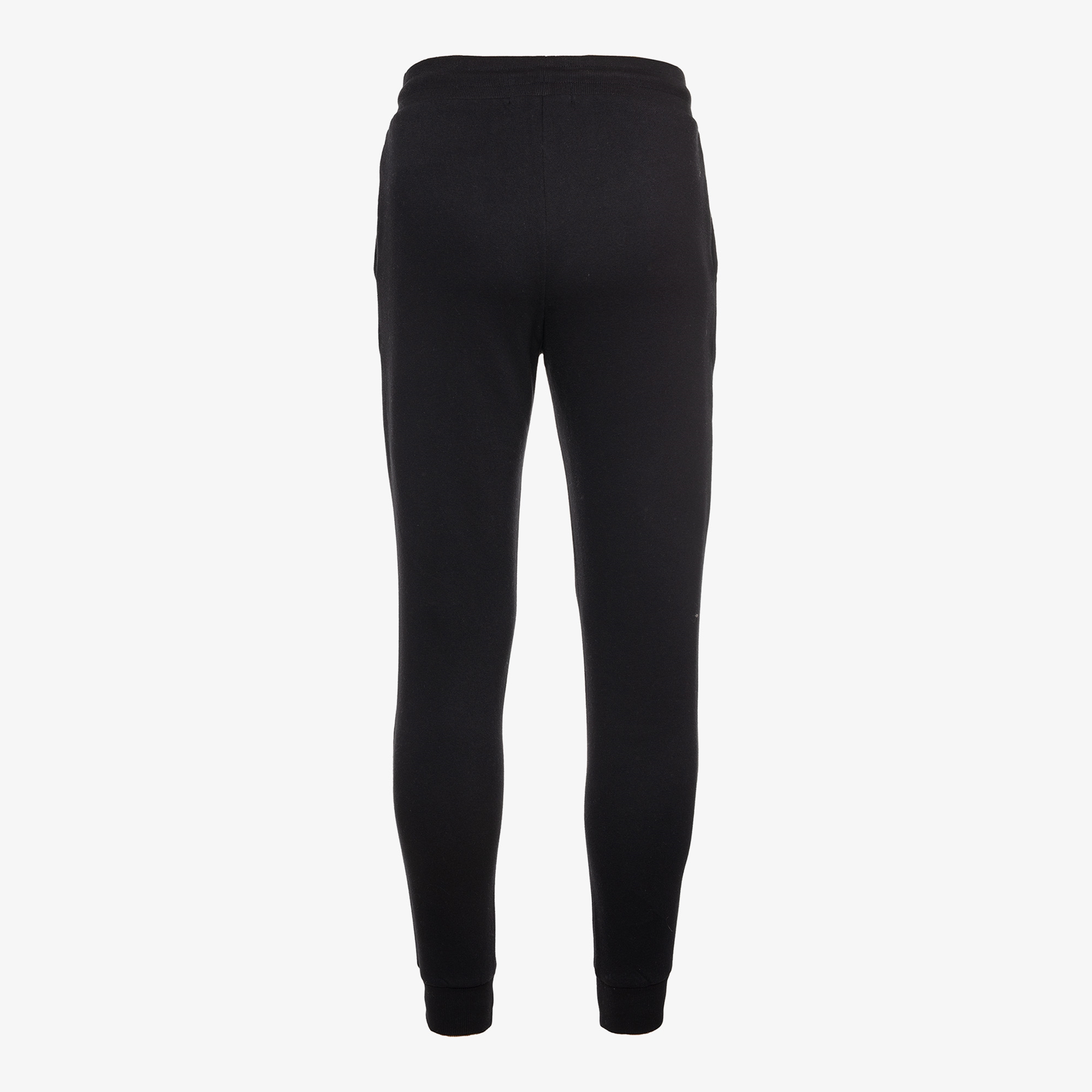 Zwarte Product joggingbroek voor heren. Voorzien van een elastische tailleband met aantrekkoordjes en twee steekzakken. De joggingbroek heeft een slimfit pasvorm en elastiek in de broekspijpen. Op het bovenbeen is een klein merkopdruk aangebracht. De joggingbroek is gemaakt van 70% katoen en 30% polyester.