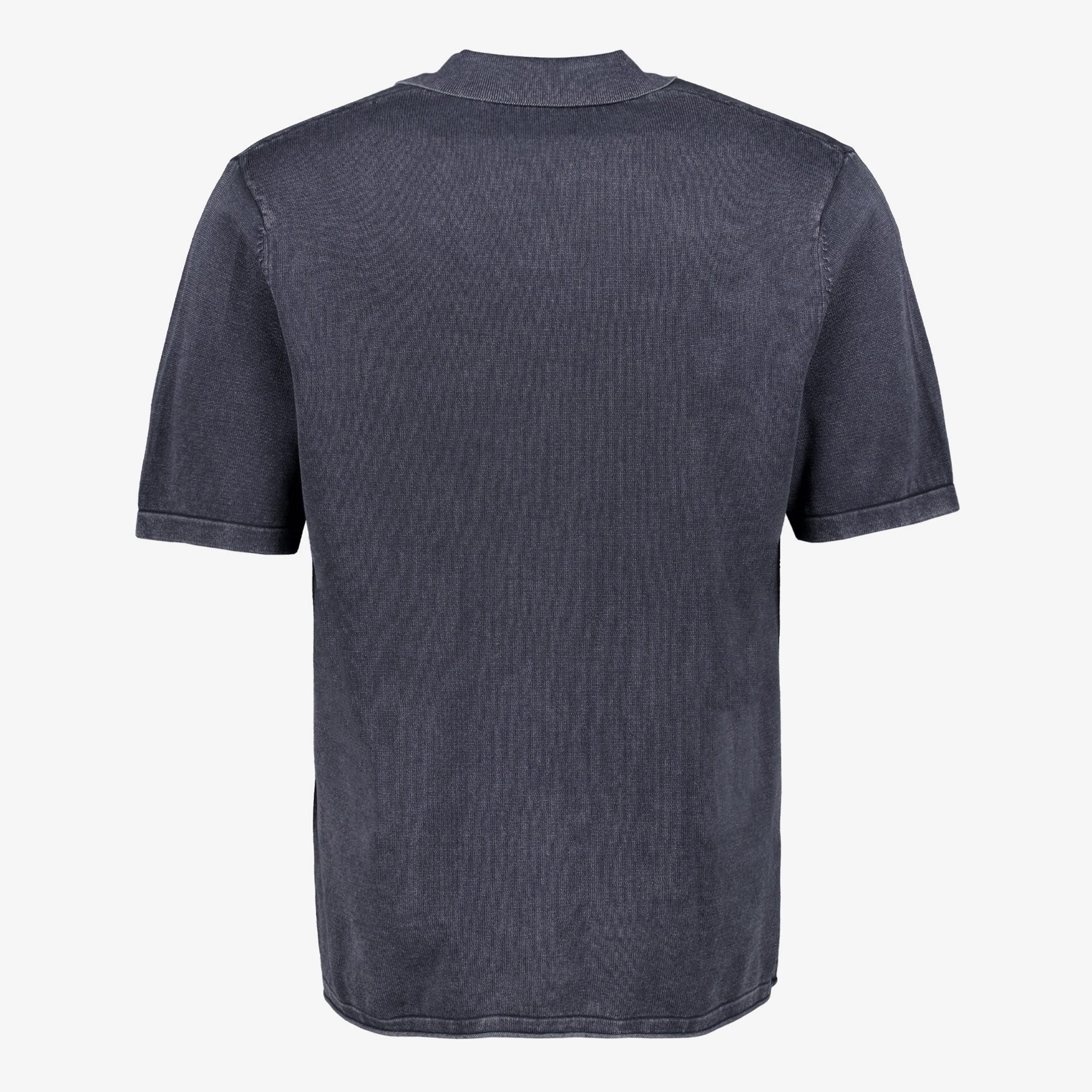 Fijngebreide heren polo uit de Produkt collectie. Voorzien van een omgeslagen kraag en korte mouwen. Deze blauwe heren polo is gemaakt van 100% katoen.