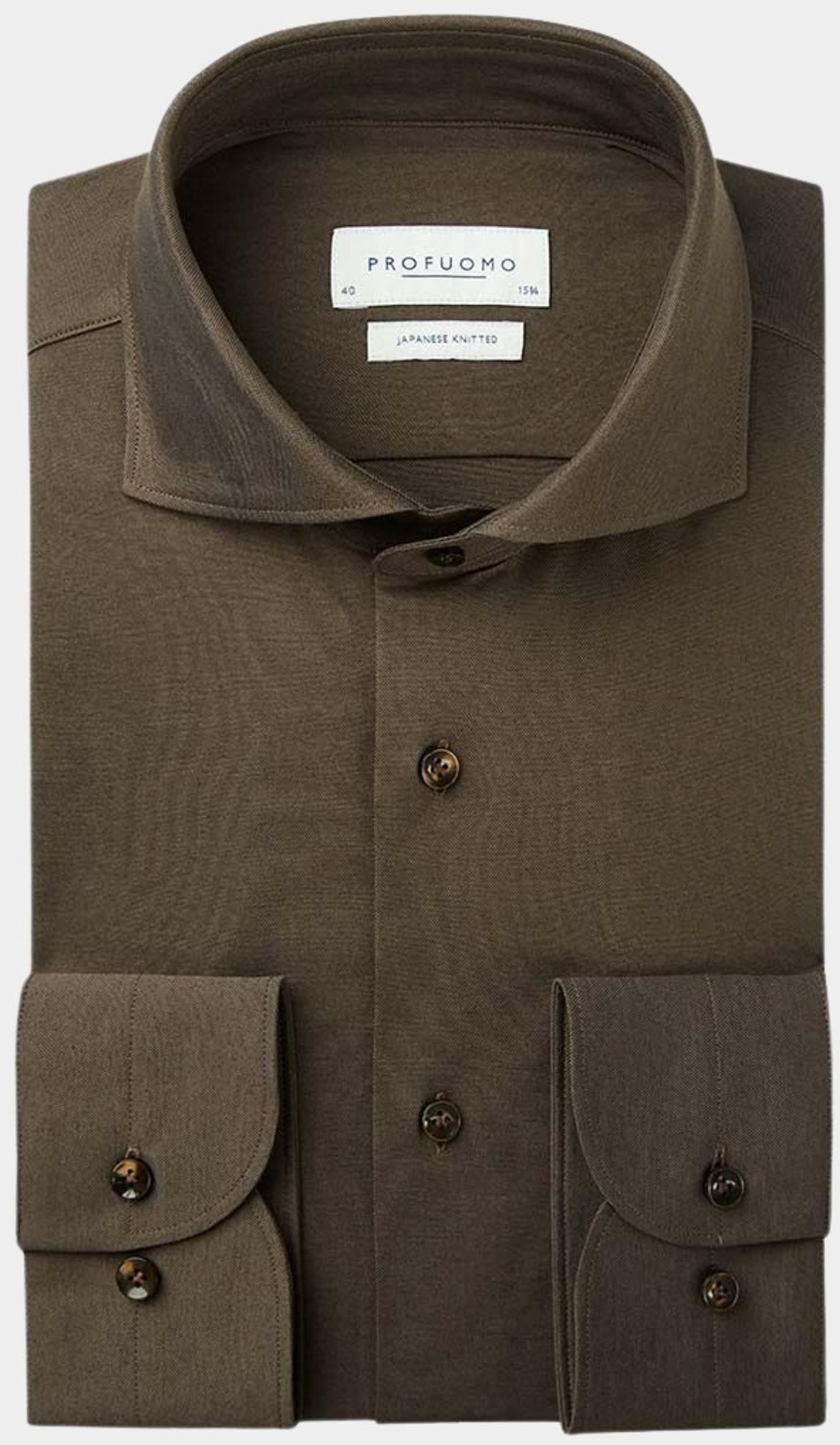 Profuomo Business hemd lange mouw Bruin Japanese knitted PPVH10047I/H