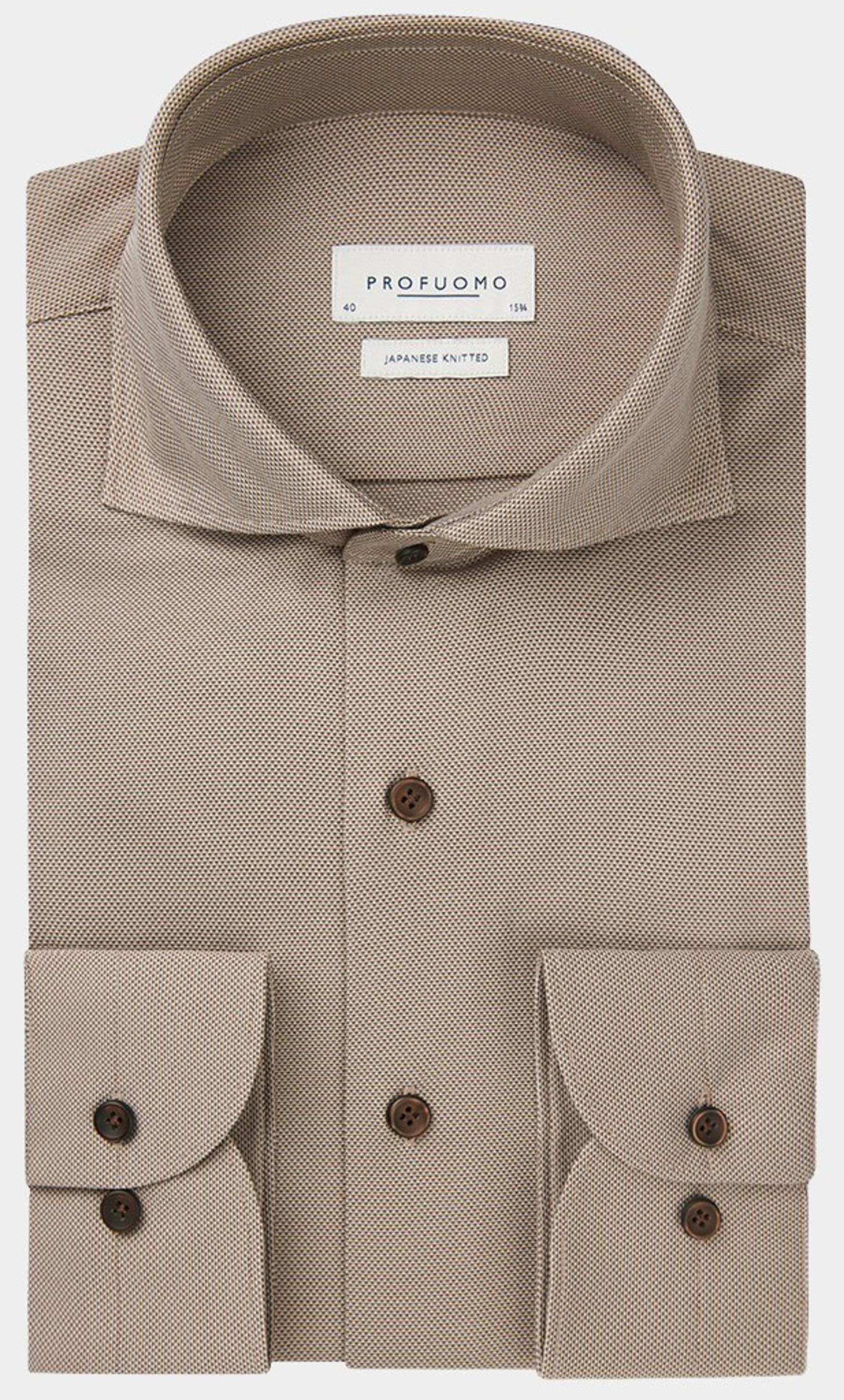 Profuomo Business hemd lange mouw Bruin PPWH10007B/H3