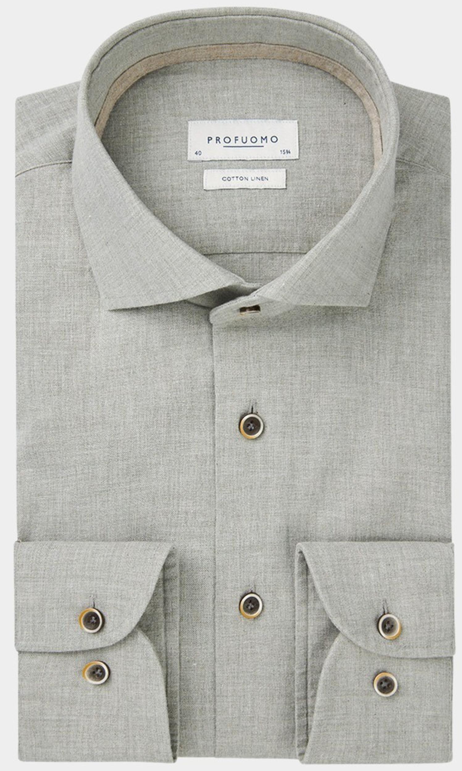 Dit groene business overhemd van Profuomo is de perfecte toevoeging aan de garderobe van elke moderne man. Met zijn lange mouwen en regular fit pasvorm is dit overhemd zowel stijlvol als comfortabel. Gemaakt van 80% katoen en 20% linnen, is dit overhemd ideaal voor de lente- en zomermaanden. Het overhemd heeft een wide spread kraag die zorgt voor een zakelijke uitstraling. Dit overhemd kan gewassen worden tot 30°C, waardoor het gemakkelijk te onderhouden is. Combineer dit overhemd met een nette broek en een paar mooie schoenen voor een formele look, of draag het onder een colbert voor een meer casual uitstraling. Of je nu naar kantoor gaat of een avondje uit, met dit groene business overhemd zie je er altijd tiptop uit. Bestel dit overhemd vandaag nog en maak indruk op elke gelegenheid.