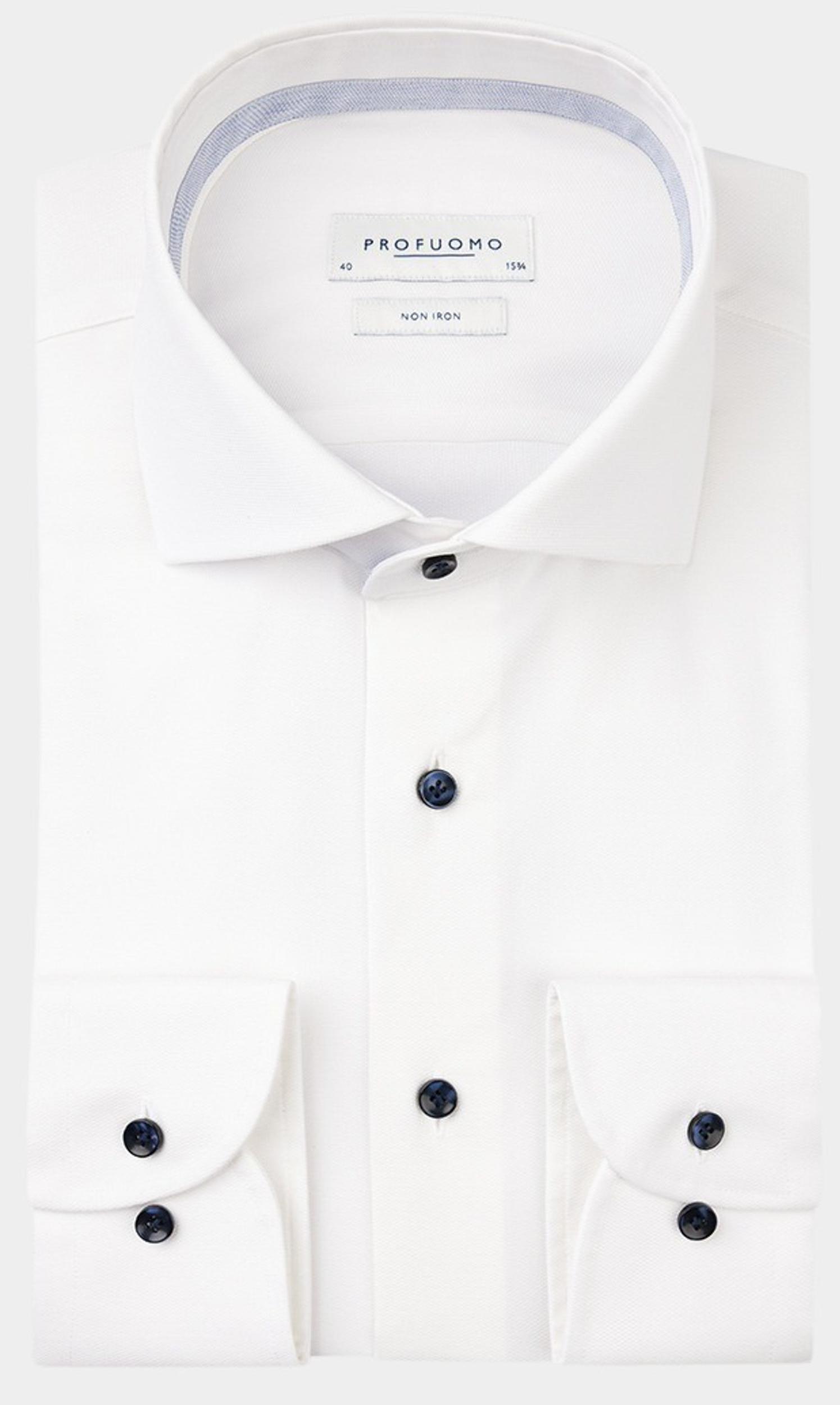 Dit Profuomo business overhemd met lange mouwen is een must-have voor het najaar en de winter. Het overhemd is gemaakt van hoogwaardig materiaal, bestaande uit 97% katoen en 3% elastaan, wat zorgt voor een comfortabele pasvorm en enige stretch. Het overhemd heeft een regular fit, wat zorgt voor een nette en professionele uitstraling. Het overhemd is uitgevoerd met een stijlvolle cutaway kraag, waardoor het perfect is voor formele gelegenheden of zakelijke afspraken. Daarnaast is het overhemd ook geschikt voor casual gelegenheden wanneer gecombineerd met een mooie jeans of chino. Het overhemd kan gewassen worden tot 30°C, waardoor het eenvoudig te onderhouden is. Dit tijdloze overhemd mag zeker niet ontbreken in de garderobe van de moderne man die er stijlvol en verzorgd uit wilt zien. Bestel dit Profuomo overhemd nu en maak jouw outfit compleet!