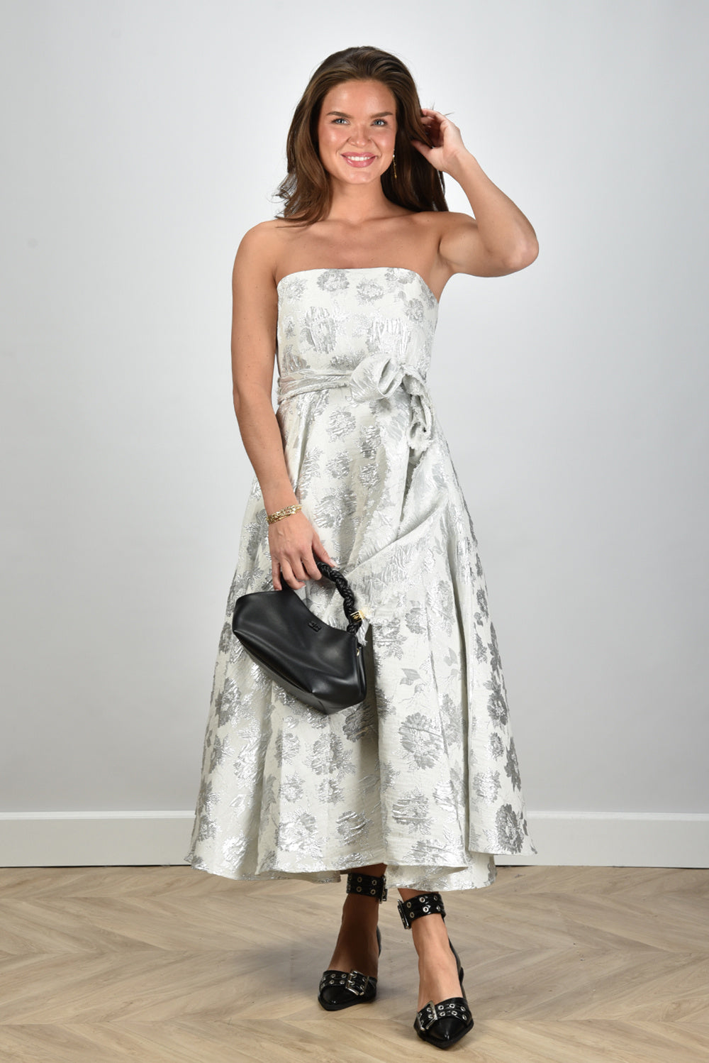 Zie hier de Psophia jurk 206DRS2345 in zilver, een verfijnde keuze voor elke gelegenheid. Gemaakt van 67% polyester, 32% viscose en 1% elastaan biedt deze jurk een normale pasvorm. Handwas aanbevolen om de kwaliteit te behouden. Model Lise draagt maat M bij een lengte van 1,73m.