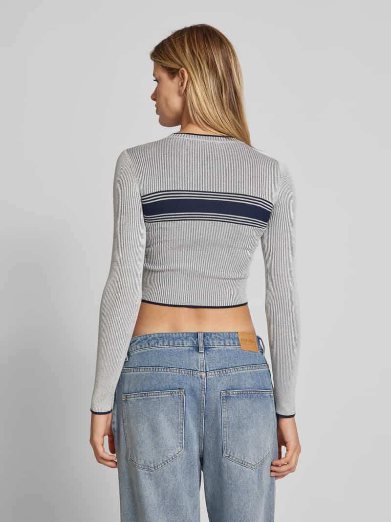 Damespullover van GUESS Jeans;Nauwsluitend model;Labelstitching;Model ‘JACQUARD’;Ronde hals;Contrastboorden;Ruglengte bij maat S: 43 cm;Mouwlengte bij maat S: 61 cm
