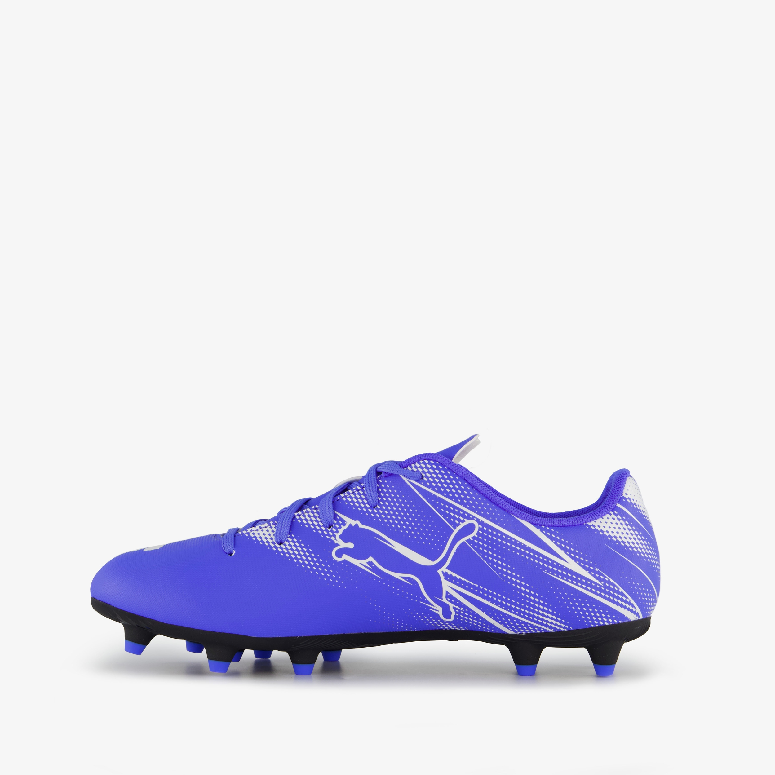Blauwe Puma Attacanto FG/AG voetbalschoenen met witte accenten voor jongens en meisjes. Het bovenwerk is gemaakt van imitatieleer, het binnenwerk is van textiel en de lichte buitenzool van rubber. De voetbalschoenen hebben een FG/AG noppenconstructie. Dit maakt de veldschoenen geschikt voor zowel natuur- als kunstgras. Voorzien van een vetersluiting en een uitneembare binnenzool van textiel.