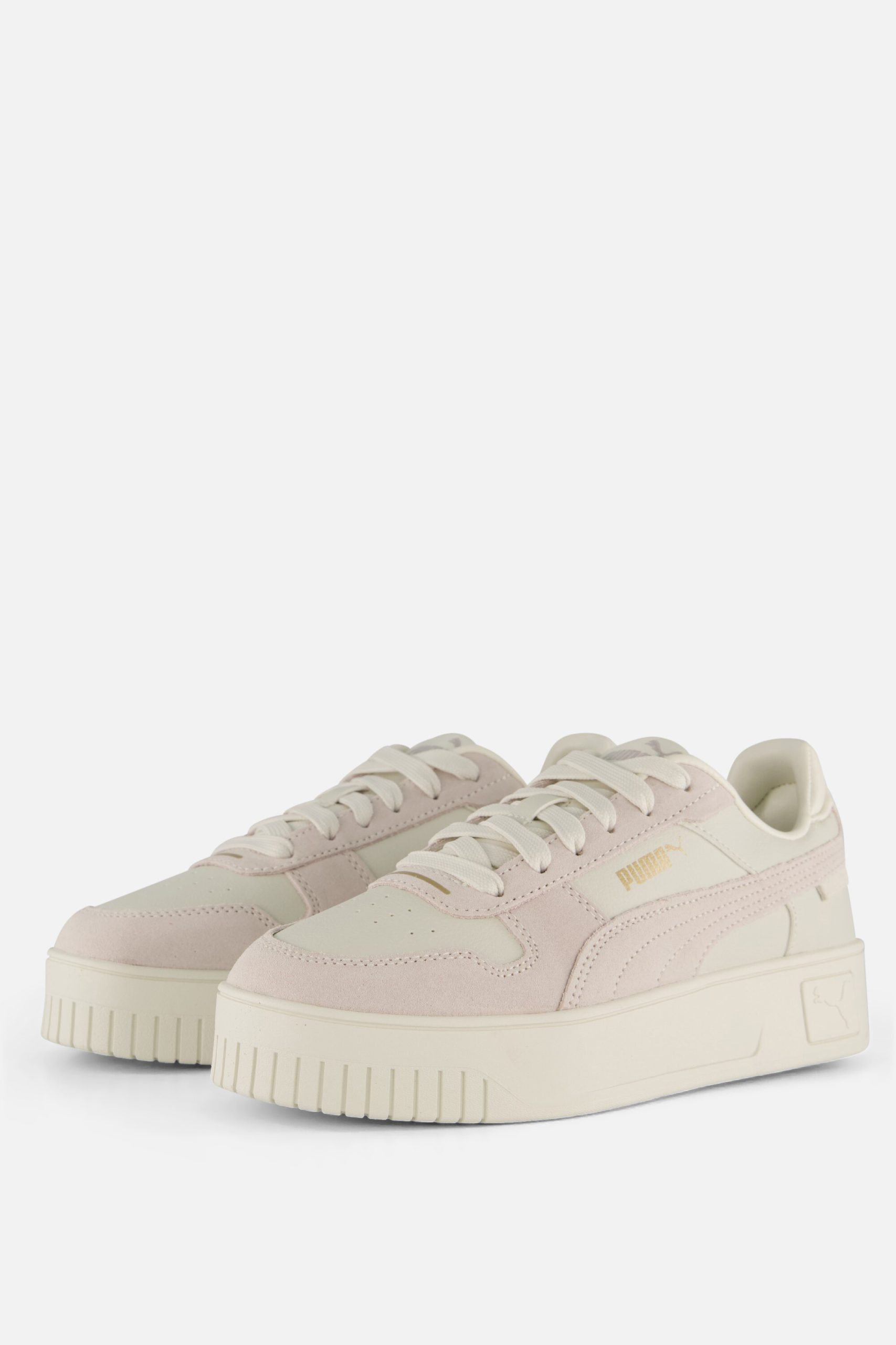 Deze jaren 80 geïnspireerde Puma Carina sneakers zijn van suede en gemaakt van 20% gerecycled materiaal. De voering en comfortabele binnenzool zijn gemaakt van textiel. De sneakers zijn voorzien van een comfortabele instap en zachte demping.
