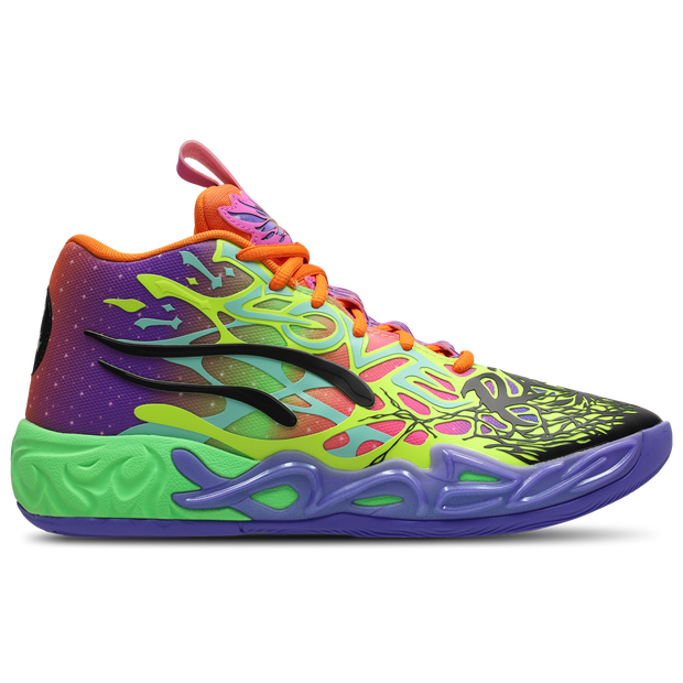 Geboren om uniek te zijn De PUMA MB.04 Be You is geïnspireerd op de ‘BE MELO’-mentaliteit van LaMelo Ball. Het opvallende gebreide bovenwerk, de futuristische 5D-graphics en de ademende voering zorgen voor ondersteuning en comfort. De NITROFOAM-demping en CMEVA-technologie zorgen voor explosieve energie en ultralicht comfort bij elke stap. Stabiliteit wordt gegarandeerd door een voorgevormde hielkap van TPU en een agressief profiel, zodat elke draai, drive en dunk goed wordt ondersteund. Elk paar heeft een uniek logo op de hiel met een eigen verhaal. De MB.04 is een verlengstuk van het universum van Melo. Trek je schoenen aan en stijg op met de PUMA MB.04 Be You. Kenmerken van de PUMA MB.04 Be You: * Tussenzool van met stikstof geïnjecteerd NITROFOAM-schuim * CMEVA: onder druk gevormd EVA-materiaal * Constructie met normale breedte * Bovenwerk van geweven mesh * Ontwerp met vetersluiting * Rubberen slijtvast loopvlakpatroon met antislip * Verhoogde gelaagde constructie met meerdere