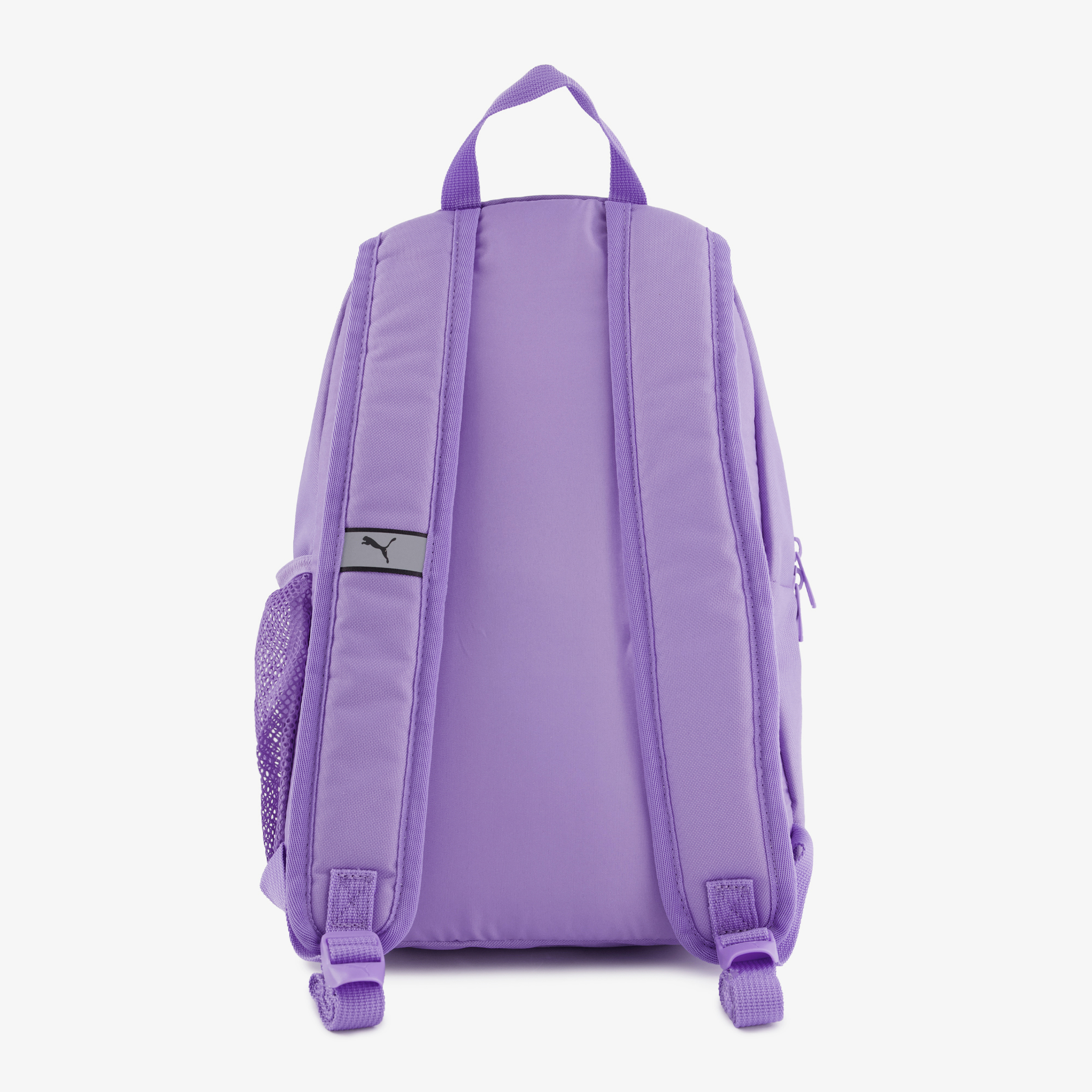 Paarse Puma Phase Small rugzak met een gele logo opdruk aan de voorzijde. Voorzien van een stevige draaglus en verstelbare, gewatteerde schouderbanden voor een optimale en comfortabele pasvorm. De tas heeft een ruime hoofdvak met dubbele ritssluiting, een voorvakje met ris en een mesh vakje aan de zijkant waar je een drinkfles kwijt kan. Afmetingen: 25 x 12 x 36 cm. Inhoud is 13 liter. Gemaakt van polyester.