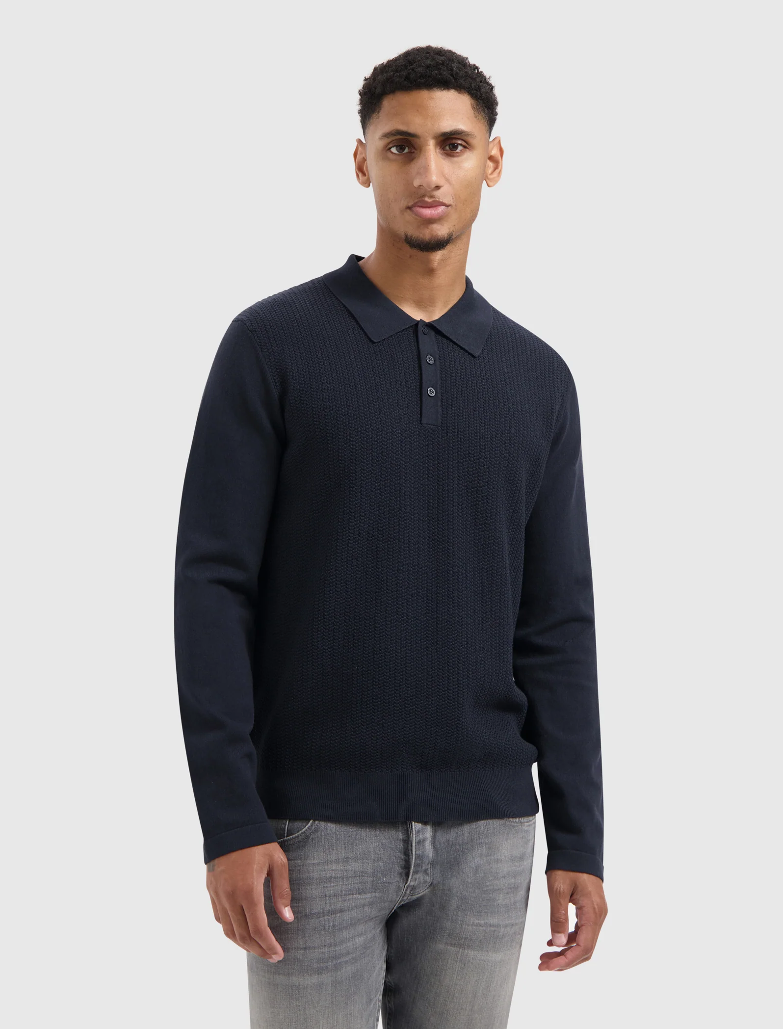 Pure Path Braided Structure Knit Polo Heren Donkerblauw