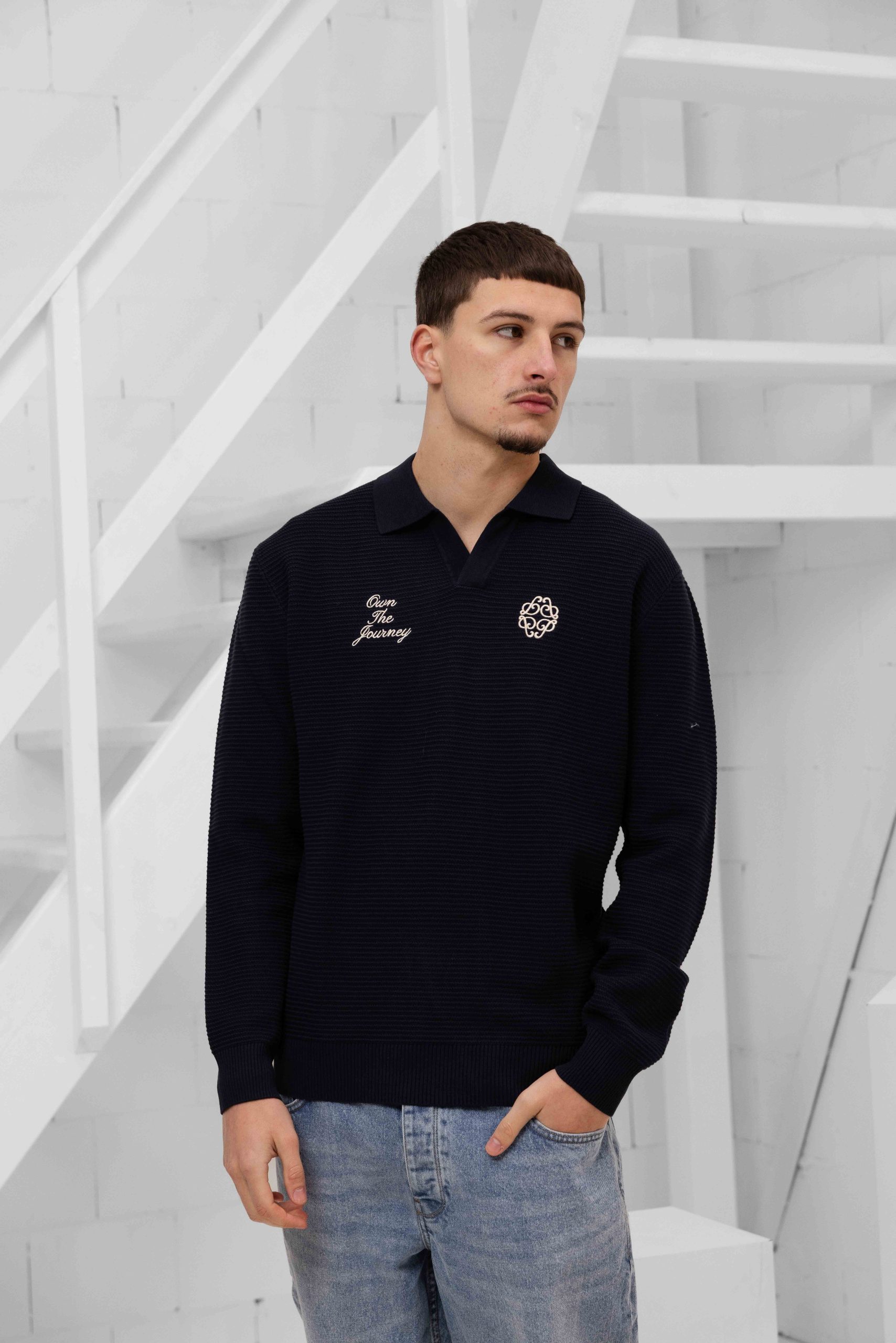 Pure Path Own The Journey Knitwear Polo Sweater Heren Donkerblauw