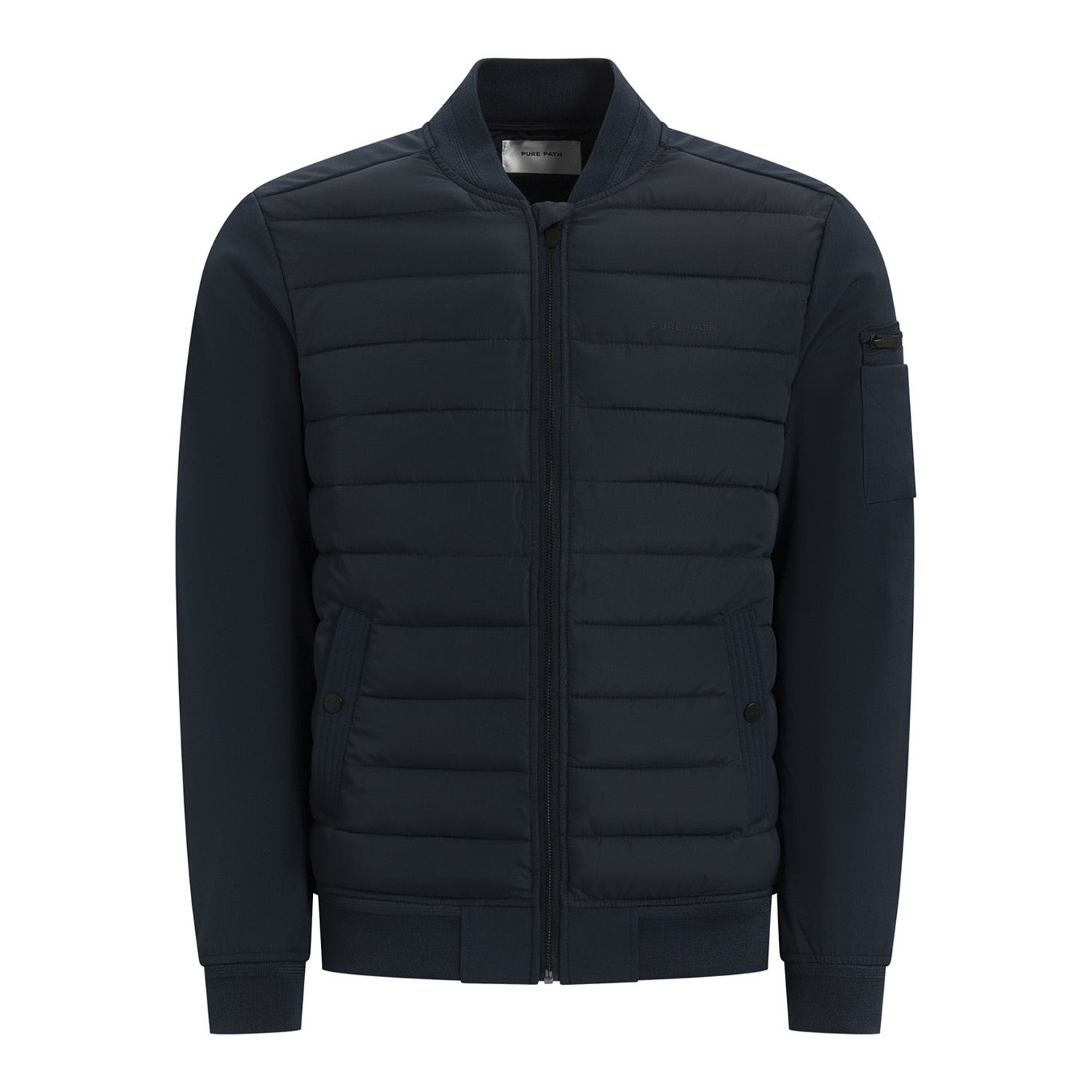 Dit tussenjack van Pure Path is een absolute must-have. Met lange mouwen en een ribgebreide kraag biedt dit item zowel stijl als comfort. Het jack sluit met een handige rits aan de voorkant en beschikt over steekzakken met drukknopen voor extra functionaliteit. Op de rechtermouw bevinden zich een praktisch zakje en een handige ritszak. De ribgebreide boorden zorgen voor een perfecte pasvorm, terwijl het logo van Pure Path trots prijkt op borsthoogte. De voorkant van het jack is gewatteerd, waardoor het zowel warmte als stijl toevoegt aan je outfit.