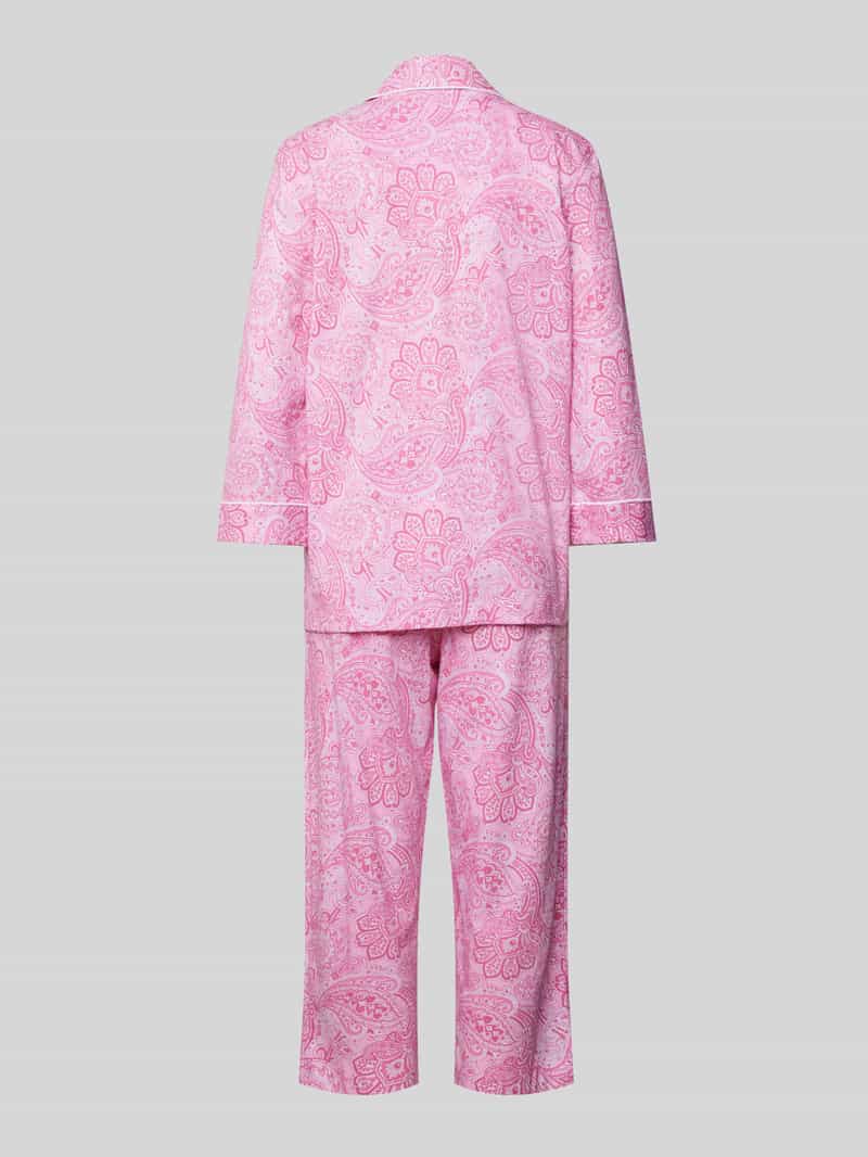 Damespyjama van Lauren Ralph Lauren;Puur katoen;Los model;Streepmotief;Bovenstuk met reverskraag;Doorknoopsluiting;Borstzak;Labelstitching;Contrastpaspels;Broek met elastische band en tunnelkoord