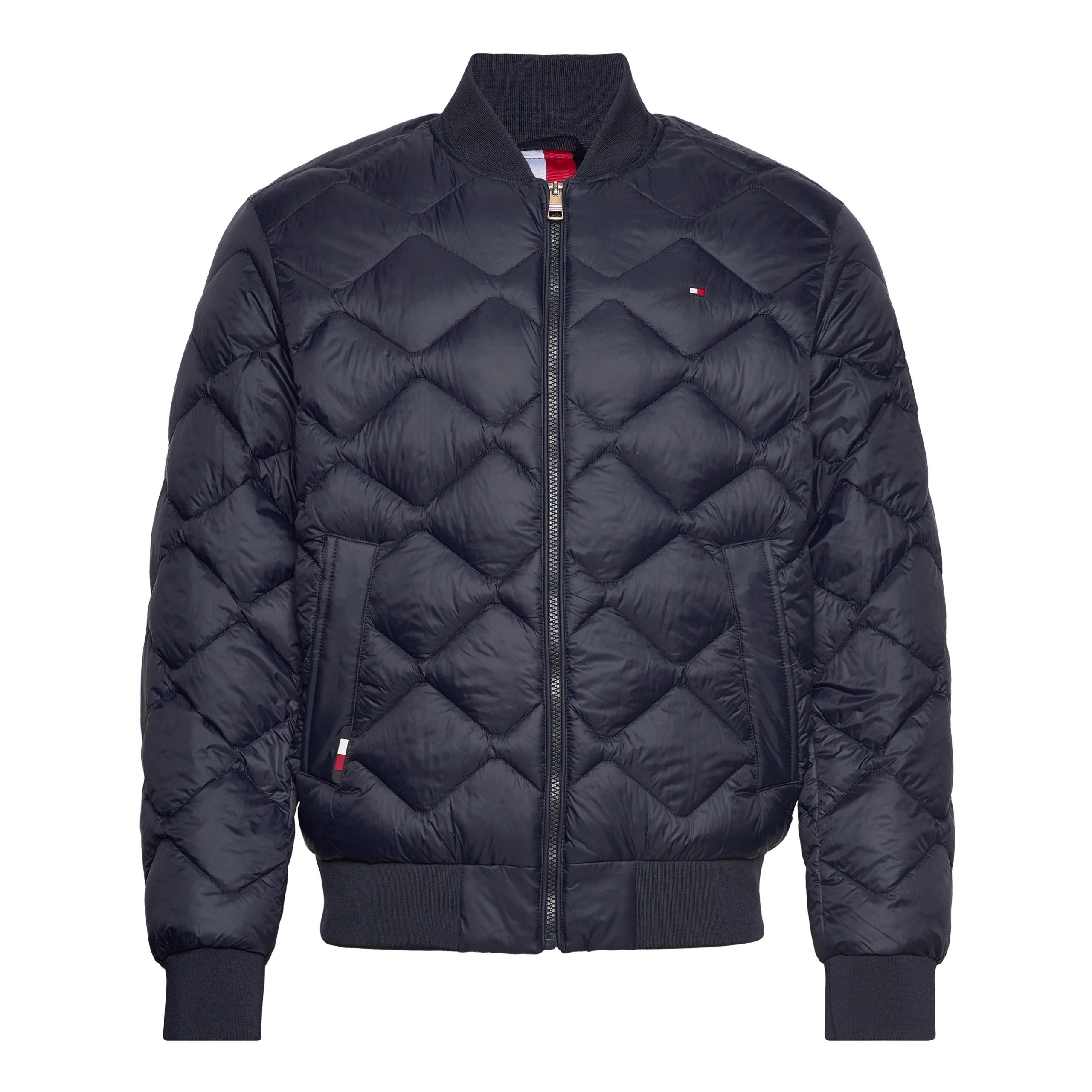 Heren jas van het merk Tommy Hilfiger in de kleur blauw. De jas is gemaakt van gerecycled polyester en heeft een normale pasvorm. Op de borst zit het iconische Tommy logo.