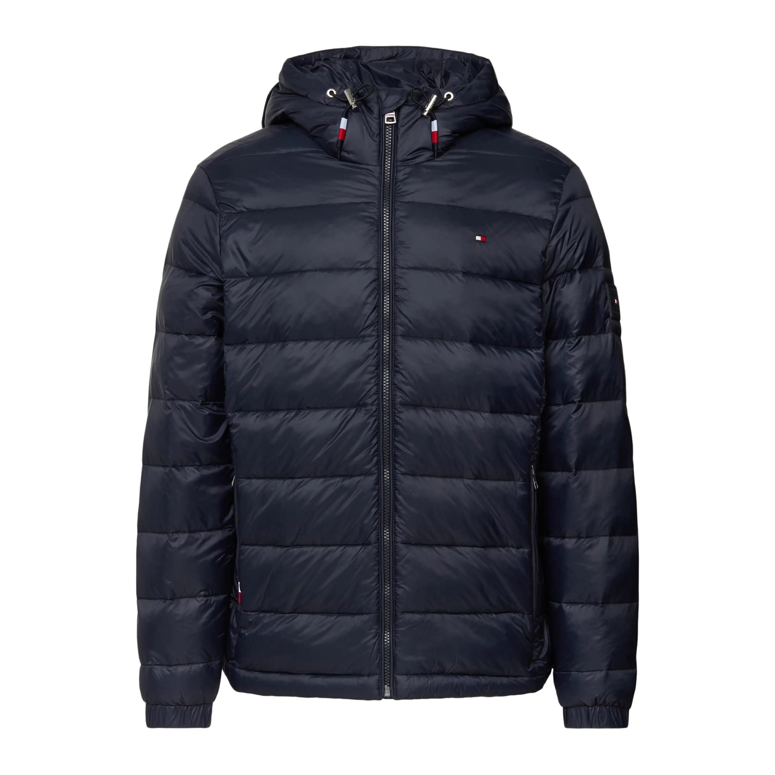 Heren jas van het merk Tommy Hilfiger in de kleur blauw. De jas is gemaakt van gerecycled polyester en heeft een normale pasvorm. Op de borst zit het iconische Tommy logo.