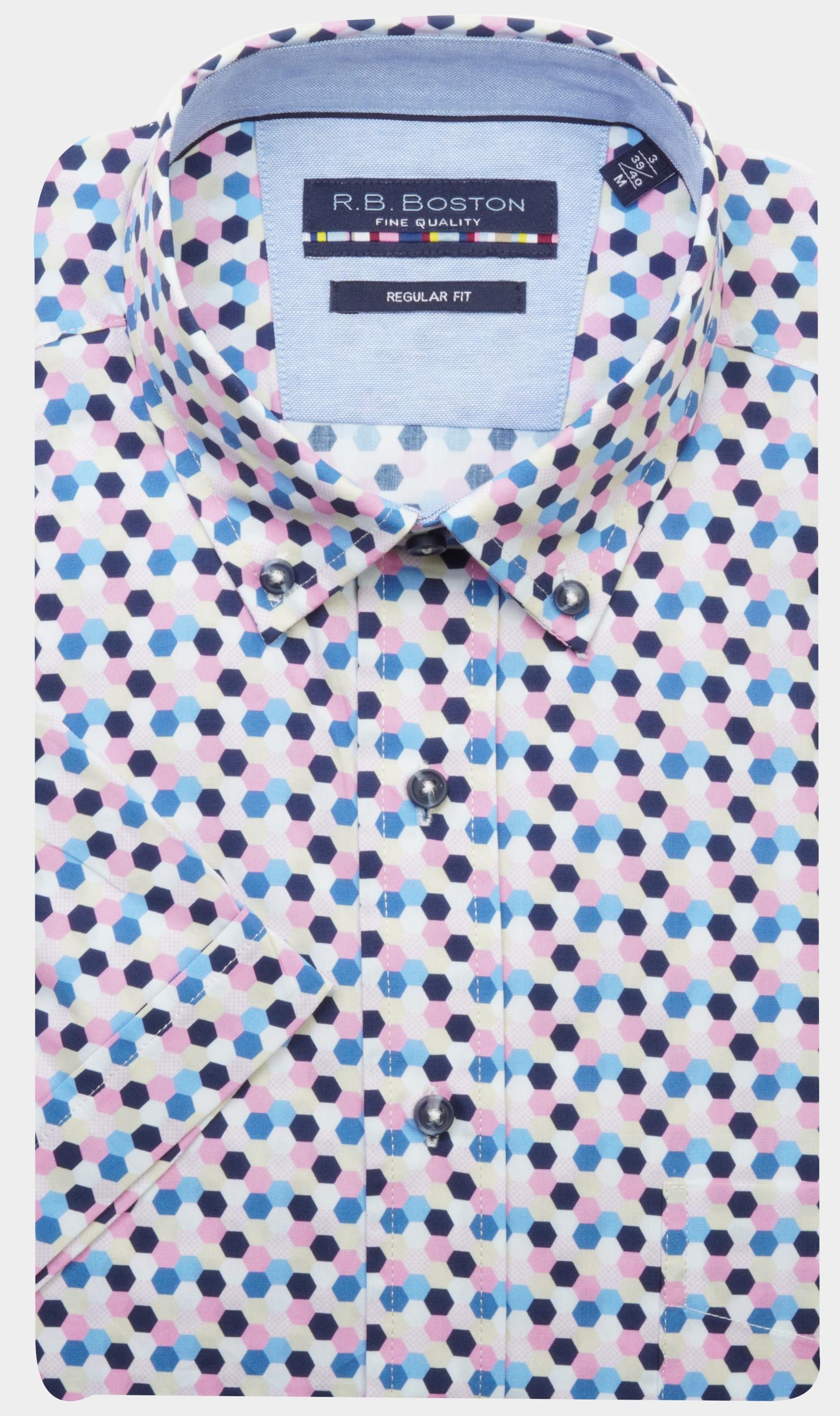 R.B. Boston Casual hemd korte mouw Roze Regular Fit 416670/401