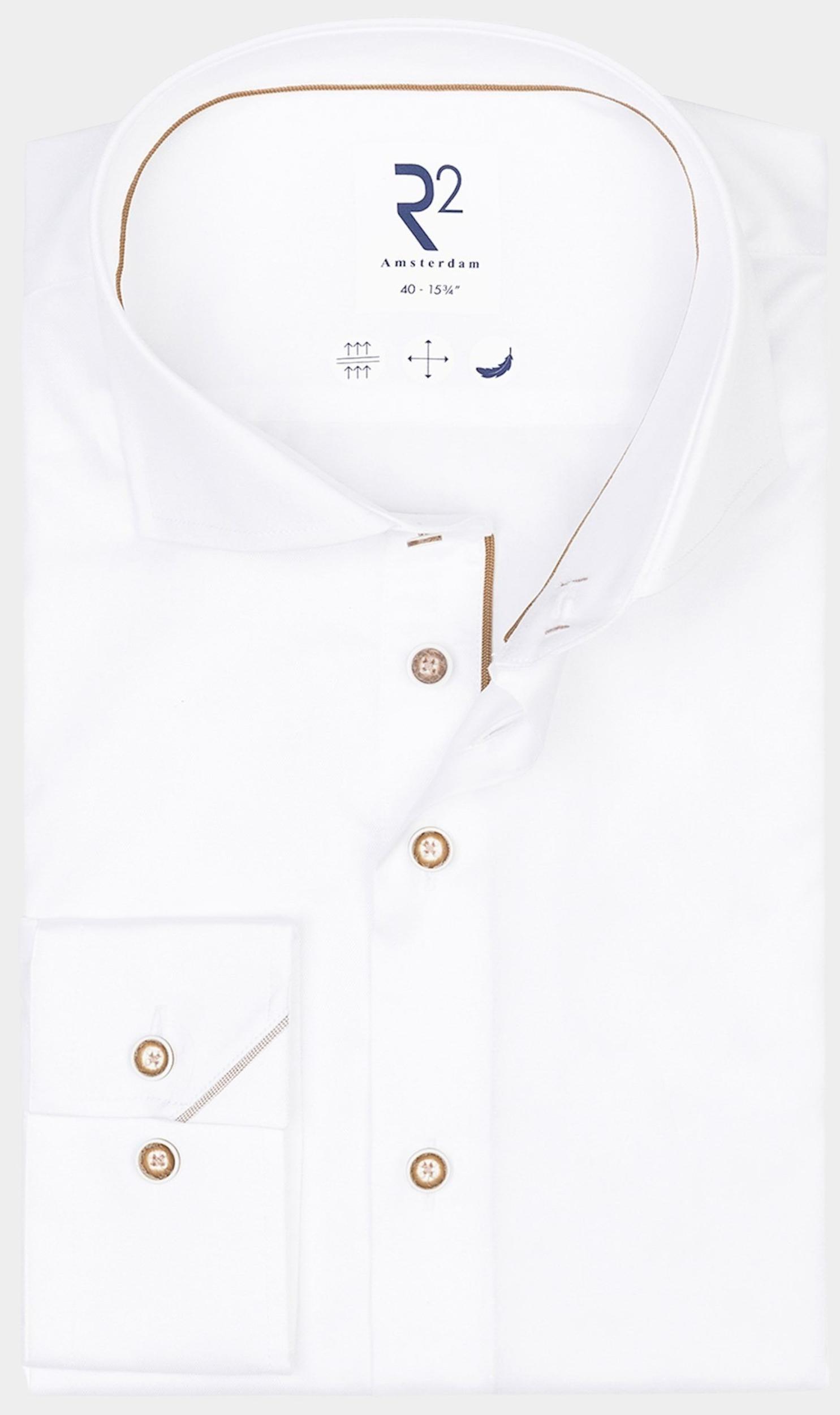 Dit witte casual overhemd met lange mouwen van R2 Amsterdam is een tijdloze toevoeging aan je kledingkast. Gemaakt van 100% biologisch katoen en met een regular fit, zorgt dit overhemd voor zowel comfort als stijl. Het is een never out of stock item, wat betekent dat het altijd beschikbaar is in onze winkel. Dit overhemd is gemakkelijk te onderhouden, doordat het tot 30°C gewassen kan worden. De wide spread kraag geeft een moderne en nette uitstraling, waardoor het overhemd zowel geschikt is voor formele als informele gelegenheden. Combineer het met een chino voor een casual look, of draag het onder een blazer voor een meer formele outfit. Met dit overhemd van R2 Amsterdam ben je altijd goed gekleed en klaar voor elke gelegenheid. Bestel hem vandaag nog en voeg een tijdloos stuk aan je garderobe toe!