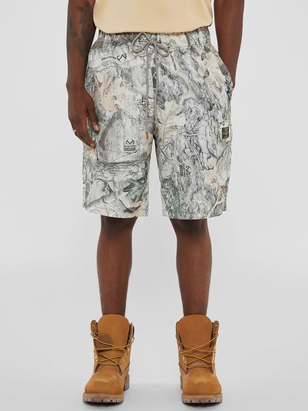 Shorts van synthetische stof.Cargomodel.Normale taille.Relaxed fit.Elastische tailleband met trekkoord.STOF: Nylon.DETAILS MATERIAAL: Met print all-over.DETAILS: Zakken aan de zijkant. Het kledingstuk op de afbeelding is maat 32.Binnenbeenlengte: 25,4 cm / 10 inch.Valt normaal op maat.