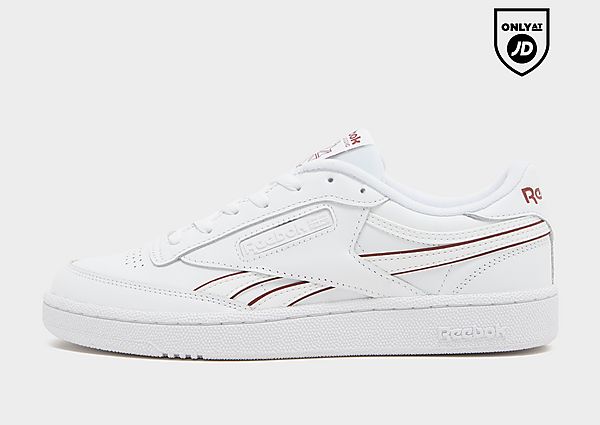 Voeg een JD-exclusief toe aan je rotatie met deze Club C Revenge-sneakers voor heren van Reebok. Deze sneakers in een witte kleurstelling hebben een duurzaam leren bovenwerk en een uitneembare EVA-schuimvoering. Ze zitten boven een gestanste EVA-tussenzool voor lichtgewicht demping, terwijl de rubberen buitenzool je grip geeft. Deze door de jaren 80 geïnspireerde sneakers zijn afgewerkt met Maroon Reebok-branding op de zijwanden, tong en hiel.. Material: Bovenwerk van leer/synthetische zool