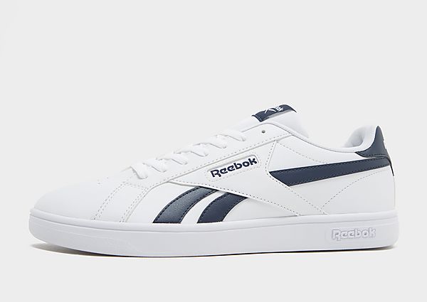 Geef je rotatie een opfrisbeurt met deze Court Retro-sneakers voor heren van Reebok. Deze schoenen hebben een witte kleurstelling met marineblauwe accenten en een strak leren bovenwerk voor langdurig gebruik. Ze hebben een tonale vetersluiting met een lage kraag voor een veilige pasvorm en zitten boven een gestroomlijnde tussenzool met lichte demping onder de voet. Ze hebben een stevige rubberen buitenzool voor grip en zijn afgewerkt met het kenmerkende Reebok-merk.. Material: Bovenwerk van leer/synthetische zool