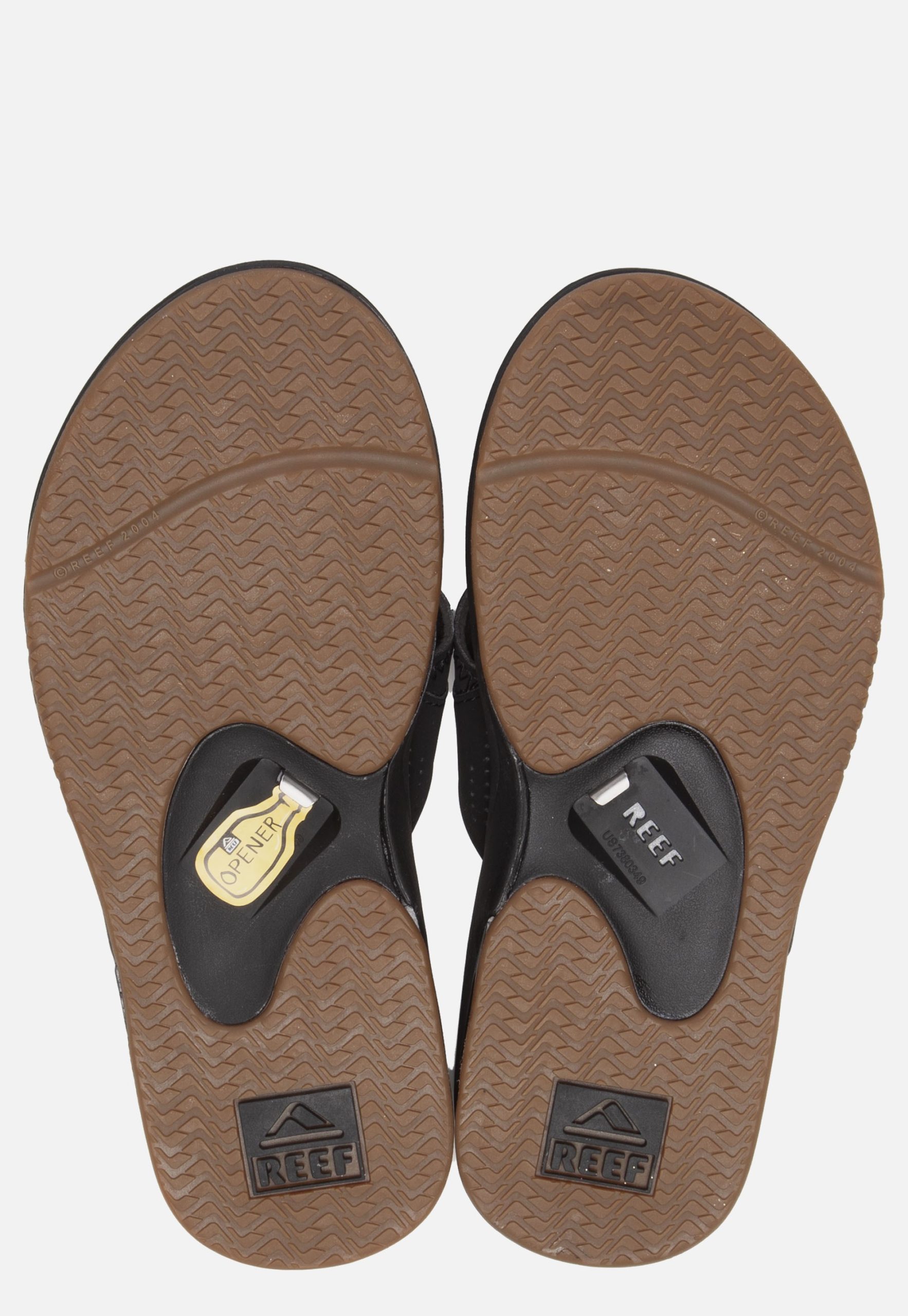 Deze Reef Fanning slippers in de kleur zwart zijn gemaakt van synthetisch materiaal. De voering en de comfortabele binnenzool zijn ook synthetisch. De slippers hebben een comfort binnenzool en zachte bandjes. De zool is gemaakt van rubber en heeft een dikte van 2 centimeter.