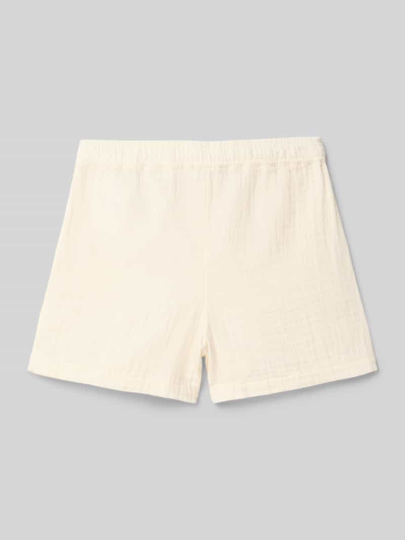Korte kinderbroek van ONLY;Model ‘Thyra’;Look: effen;Pasvorm: Regular fit ;Sluiting: Sluiting met tunnelkoord;Band: elastisch met verstelbare breedte aan de binnenkant;Zakken: steekzakken opzij;Materiaal: puur katoen;Bandwijdte bij maat 140: 30 cm;Binnenbeenlengte bij maat 140: 8 cm