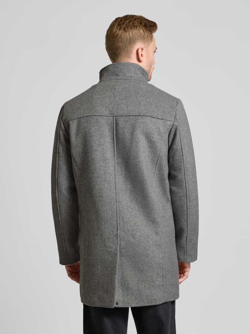 Lange wollen herenjas van Tom Tailor;Look: Two-tone;Pasvorm: Regular fit;Kraagmodel: dubbele, opstaande kraag;Sluiting: enkele knoopsluiting (buitenkant), ritssluiting (binnenkant);Motief: Krijtstreep;Applicatie: Logopatch;Details: Pas, deelnaden, loopsplit met drukknoop;Mouwvorm: lange mouwen;Zakken: verticale borstzak met ritssluiting, strookzakken opzij met extra ritszak, binnenzak;Materiaal: Polyestermix;Totale lengte bij maat M: 88 cm;Borstomvang bij maat M: 54 cm;Schouderbreedte bij maat M: 47 cm;Mouwlengte bij maat M: 66 cm
