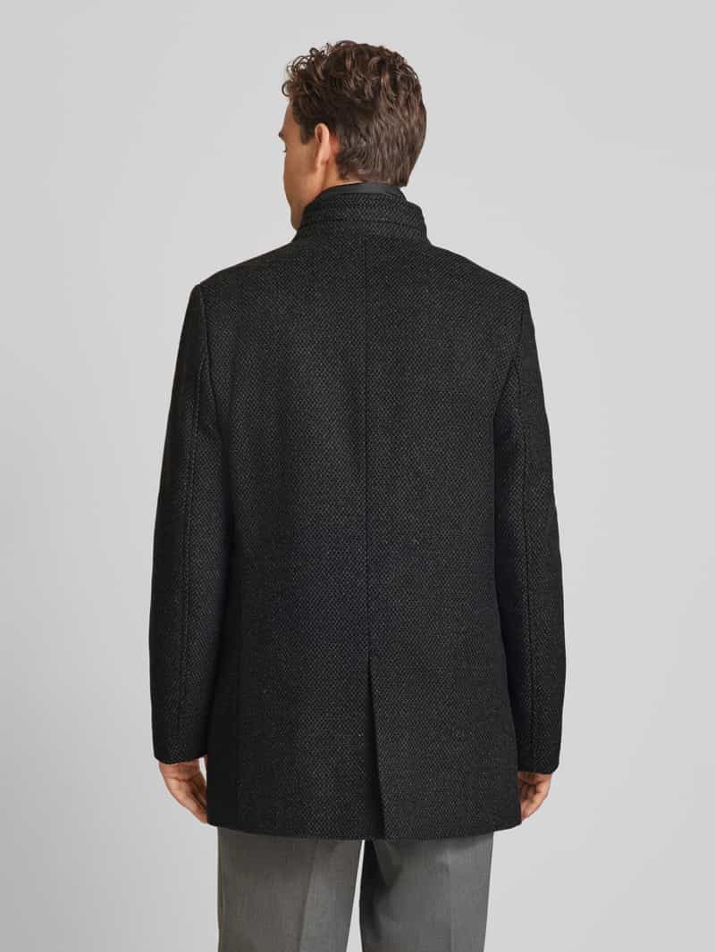 Lange wollen herenjas van s.Oliver BLACK LABEL;Look: All-over motief;Pasvorm/model: Regular fit ;Kraagmodel: Opstaande kraag;Sluiting: blinde ritssluiting;Details: Loopsplit;Mouwvorm: lange mouwen;Zakken: Binnenzak, strookzakken, borstzak met rits;Materiaalverwerking: Taftvoering;Materiaal: Wolmix;Totale lengte bij maat 50: 86 cm;Borstomvang bij maat 50: 59,5 cm;Schouderbreedte bij maat 50: 47 cm;Mouwlengte bij maat 50: 67 cm
