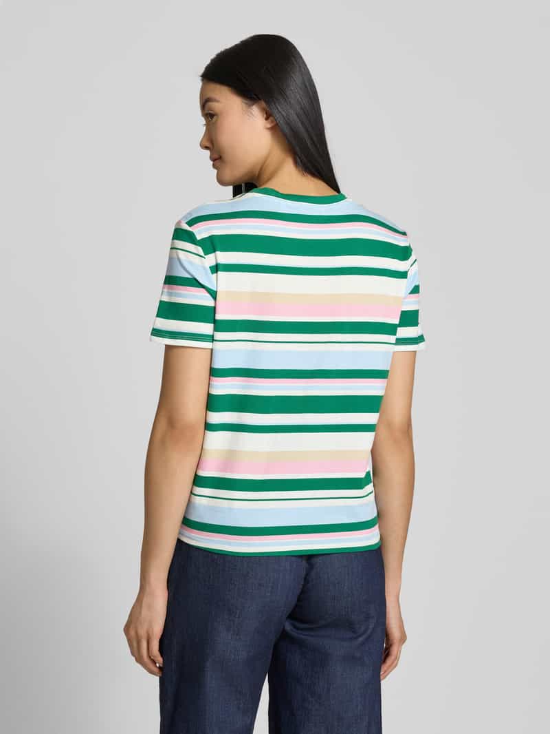 T-shirt voor dames van Tom Tailor Denim;Look: All-over motief;Pasvorm: Regular fit;Details: Knopen;Hals: ronde hals;Mouwvorm: korte mouwen;Materiaalverwerking: Jersey;Materiaal: puur katoen;Ruglengte bij maat S: 61 cm;Borstomvang bij maat S: 47 cm