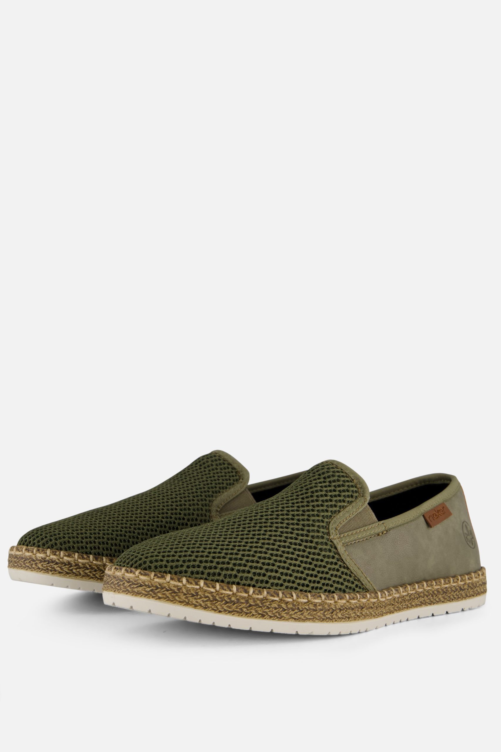 Deze Rieker instappers hebben een bovenwerk van leer. De binnenzool en voering zijn ook gemaakt van leer. De schoenen hebben een fijne pasvorm en zijn aan te trekken met behulp van de elastische inzetten aan de zijkanten. De tussenzool en de groene stiksels geven de instappers een frisse, zomerse look. De loopzool is gemaakt van rubber. De instappers hebben een vast voetbed.