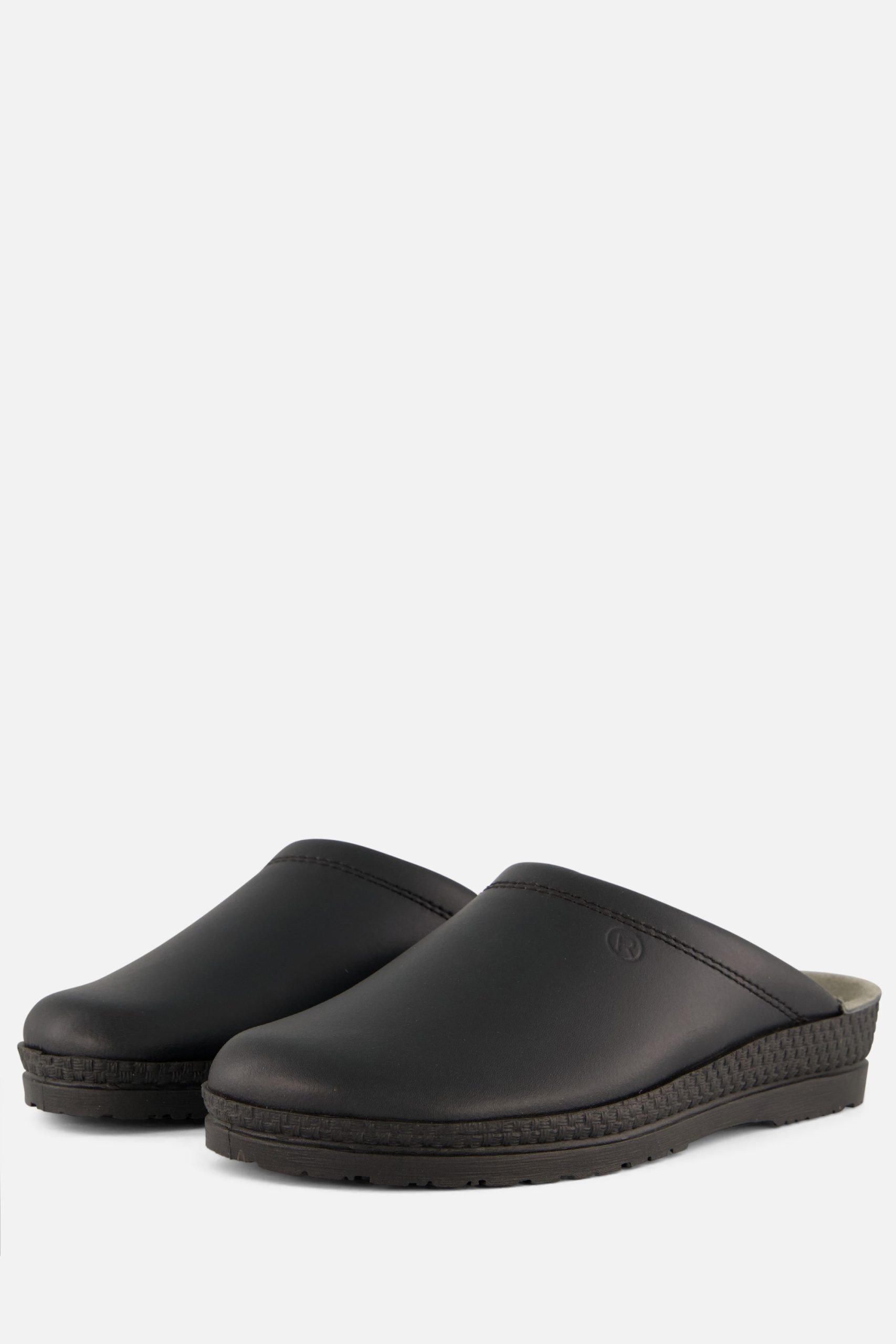 Loop er comfortabel bij in deze zwarte Rohde pantoffels. De instappers zijn gemaakt van leer en hebben een zachte voering van textiel. De binnenzool bestaat uit leer en is hierdoor ademend. Door de stevige rubberen zool kan je ook zonder problemen even naar buiten op deze pantoffels. De zwarte Rohde pantoffels hebben een vast voetbed.