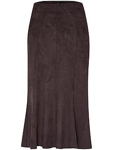 Rok van PETER HAHN. Van imitatiesuède. Klassiek, uitlopend banenmodel met een naaddunne ritssluiting en elastische band. Dankzij de deelnaden kunt u de rok ook uitstekend gebruiken voor expressieve looks. Van 95% polyester, 5% elastan. Lengte in normale maten ca. 80 cm, in korte maten ca. 76 cm. Machinewasbaar. fijnwas tot 30°. chloorbleken niet mogelijk. koud strijken. chemische reiniging, veilig. drogen in de droger niet mogelijk. 40, 42
