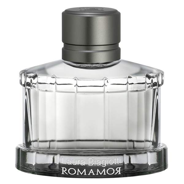 Romamor Uomo van Laura Biagiotti is in 2018 op de markt gebracht als eerbetoon aan de liefde, aan Rome en aan de man. Dit parfum is geschikt voor de man die niet afwacht, maar die zelf kansen creëert. De sterke man, die ook zijn zwakte durft te tonen. De flacon is geïnspireerd op de eeuwenoude Romeinse bouwwerken en straalt mannelijkheid en kracht uit. De ingrediënten van Kardemom, musk en vetiver geven Romamor Uomo een typisch mannelijk karakter terwijl sandelhout lavendel en amber eenmeer verleidelijk component toevoegen. De frisse noten van een snufje peper, sappige vijgen, grapefruit en gember maken dit parfum af.