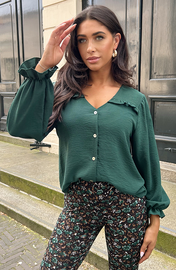 Home » Dames » Kleding » Blouses & tunieken » Ruffle Blouse Met Pofmouwen Smaragd