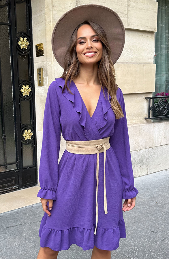 Ruffle V-hals Jurk Dark Purple