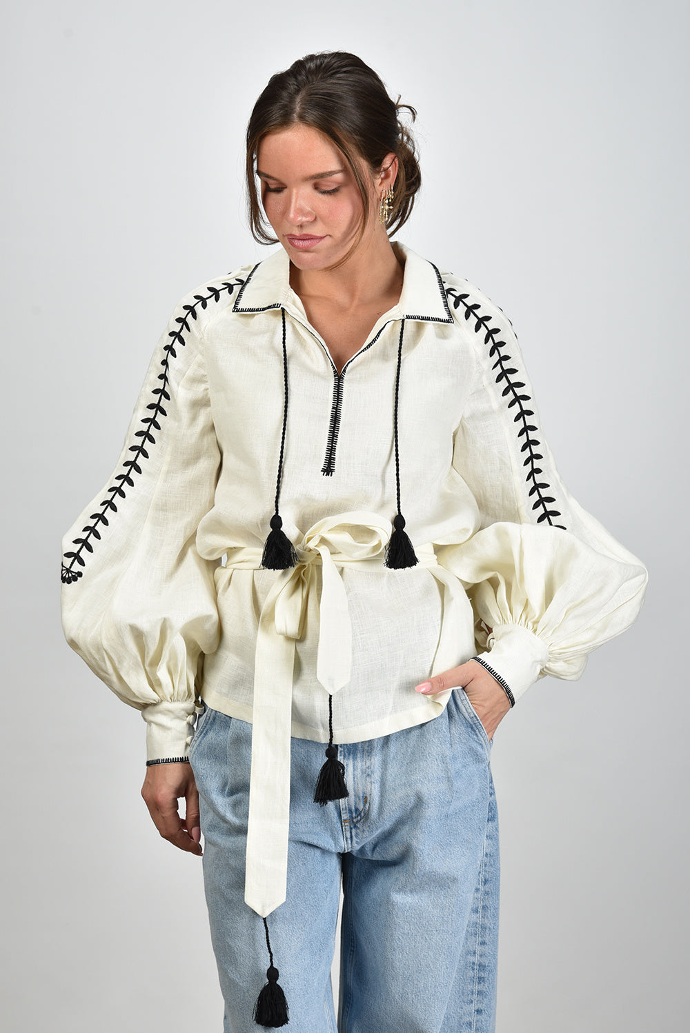 Sage & Ivy blouse Gudrun beige/black