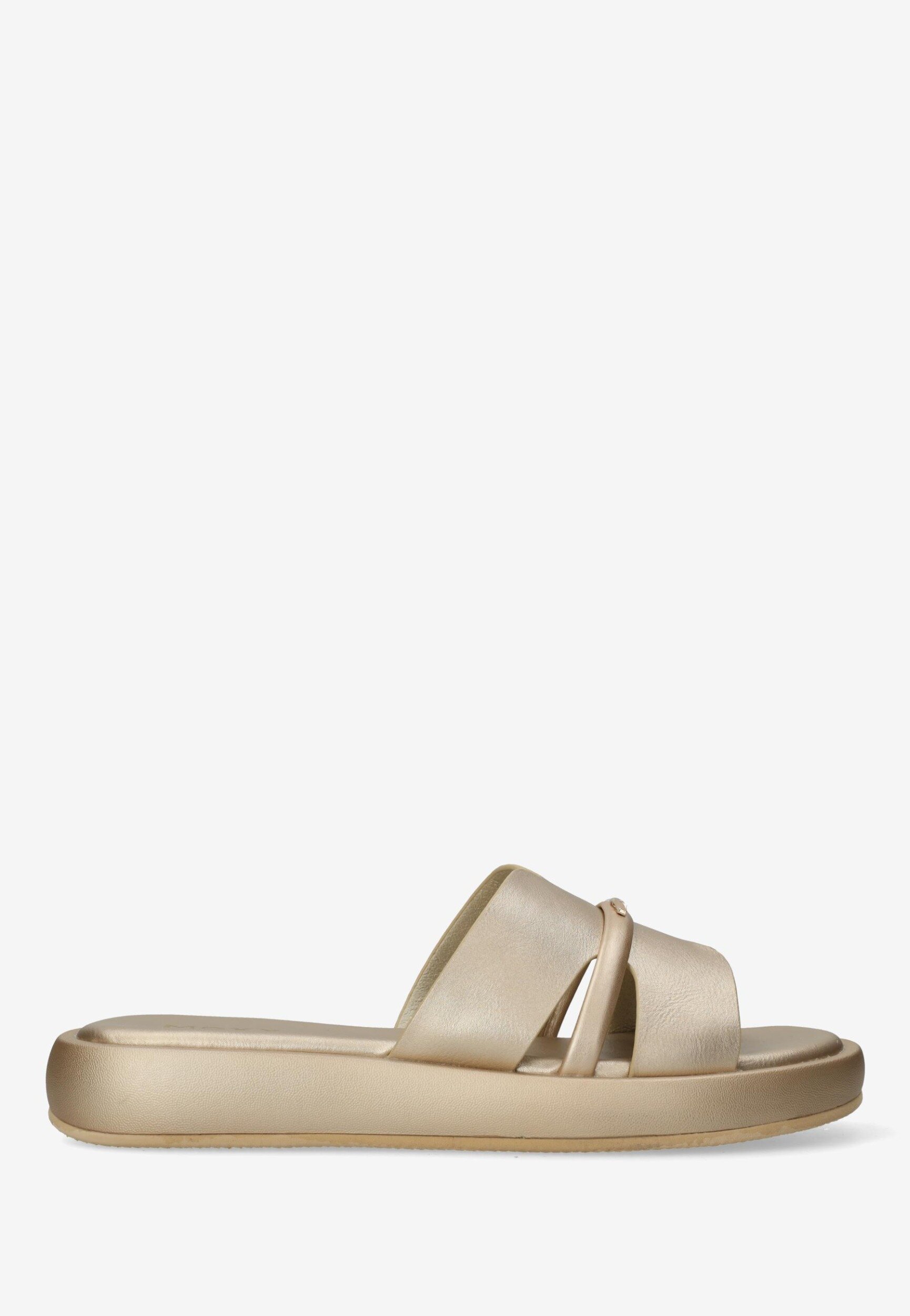 Ervaar comfort en stijl met de Gouden Lotus Pacha sandalen. Deze casual sandalen, gemaakt van 100% polyurethaan, bieden een moderne uitstraling dankzij hun eenvoudige en strakke design. De Ethyl Vinyl Acetate (EVA) zool zorgt voor een lichte en comfortabele loopervaring, ideaal voor dagelijks gebruik. De gouden kleur geeft een subtiele glans die moeiteloos combineert met diverse outfits, zowel voor een dagje weg als een ontspannen avond.