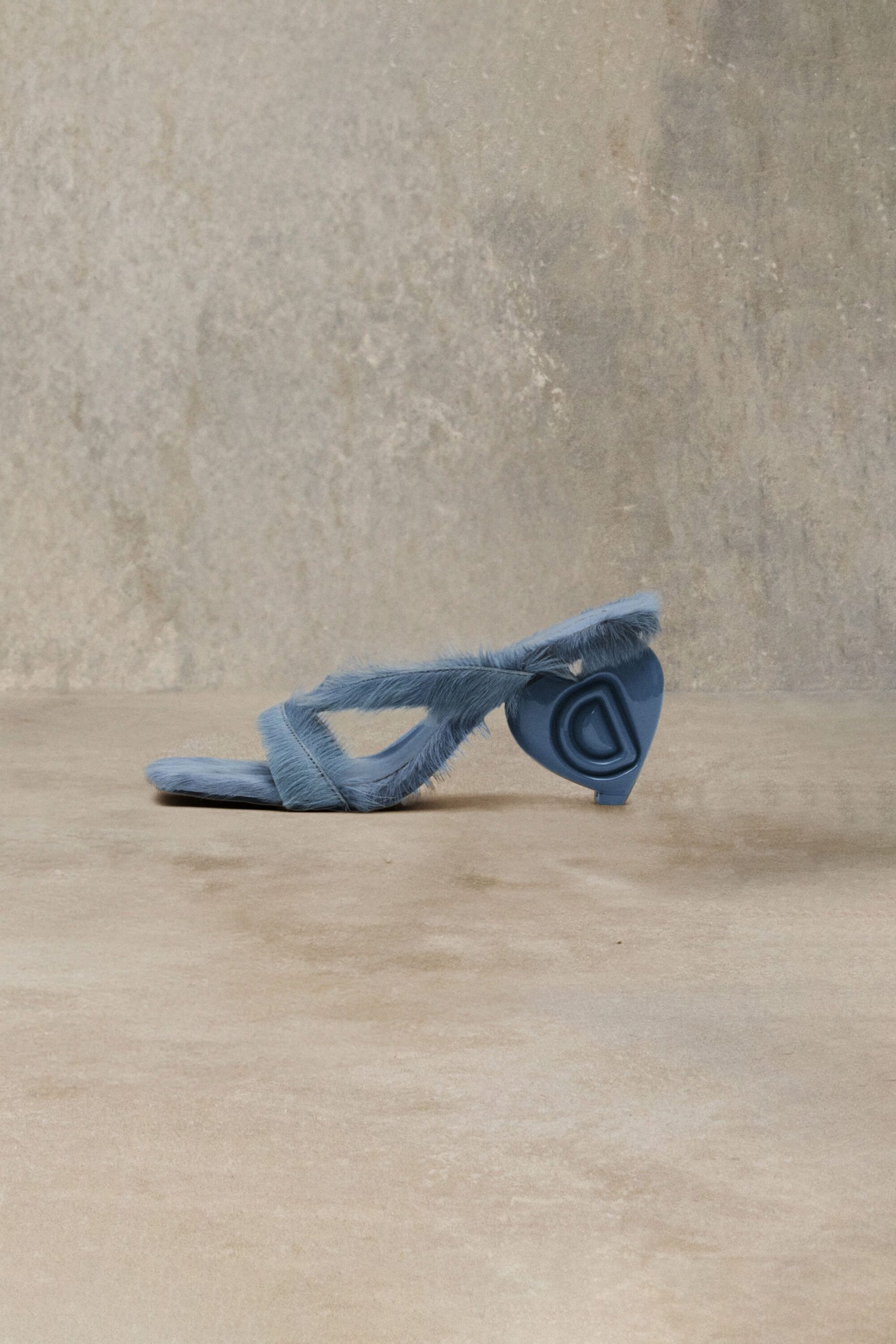 Open sandalen met vierkante punt, met hak in de vorm van een hart en logo Desigual, gemaakt van leer met een harige afwerking.